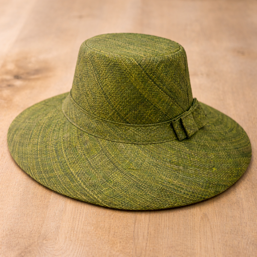 Handwoven Raffia Sun Hat in Avocado - Ethical, Lightweight & Travel-Ready.
