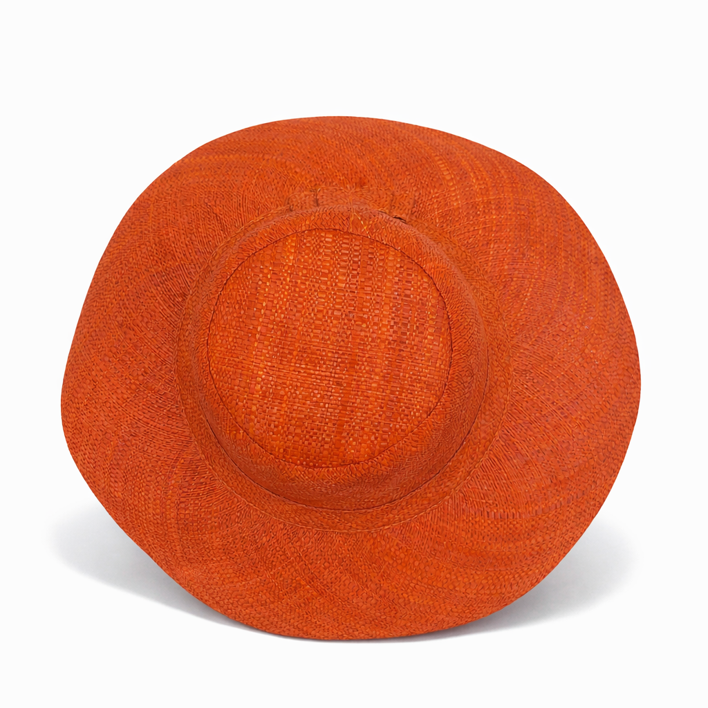 Flat Brim Raffia Sunhat in Burnt Orange Madagascan