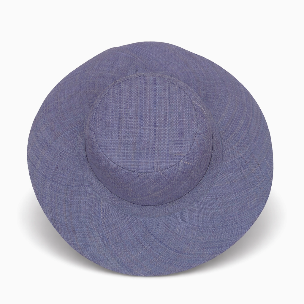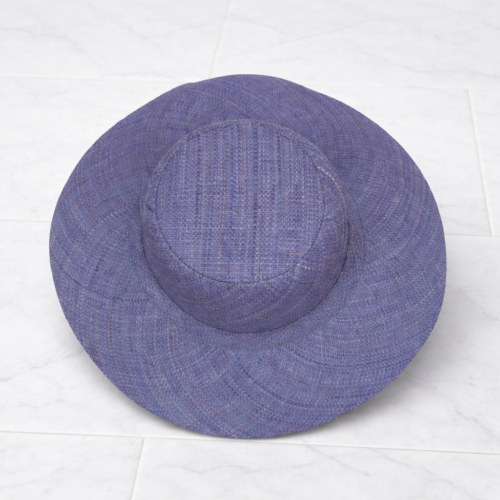 Flat Brim Raffia Sunhat in Deep Cornflower Blue Madagascan