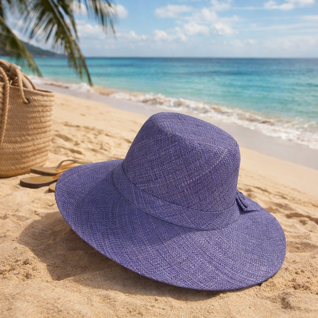 Handwoven Raffia Sun Hat in Deep Cornflower Blue - Ethical, Lightweight & Travel-Ready.