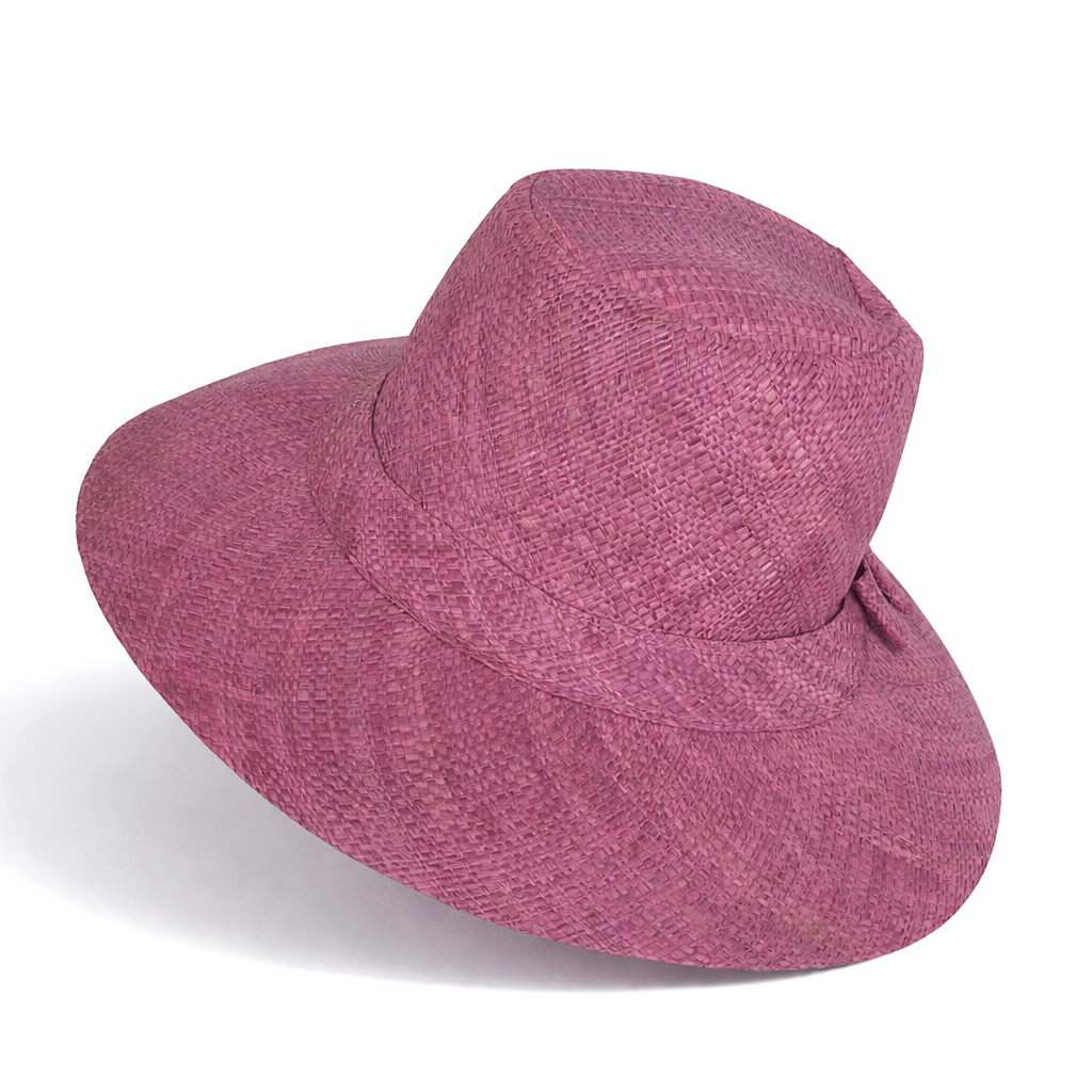Handwoven Raffia Sun Hat in Mardi Gras Purple - Ethical, Lightweight & Travel-Ready.