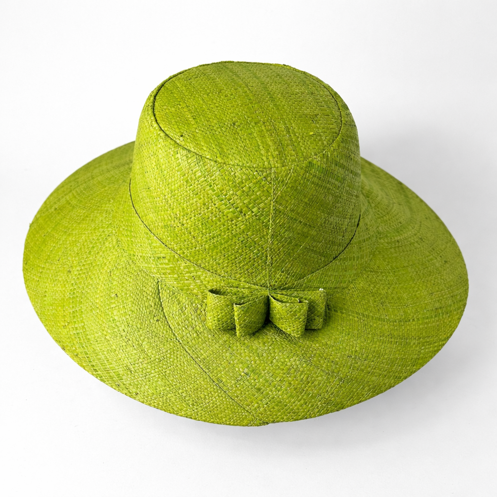 Handwoven Raffia Sun Hat in Lime Green - Ethical, Lightweight & Travel-Ready.