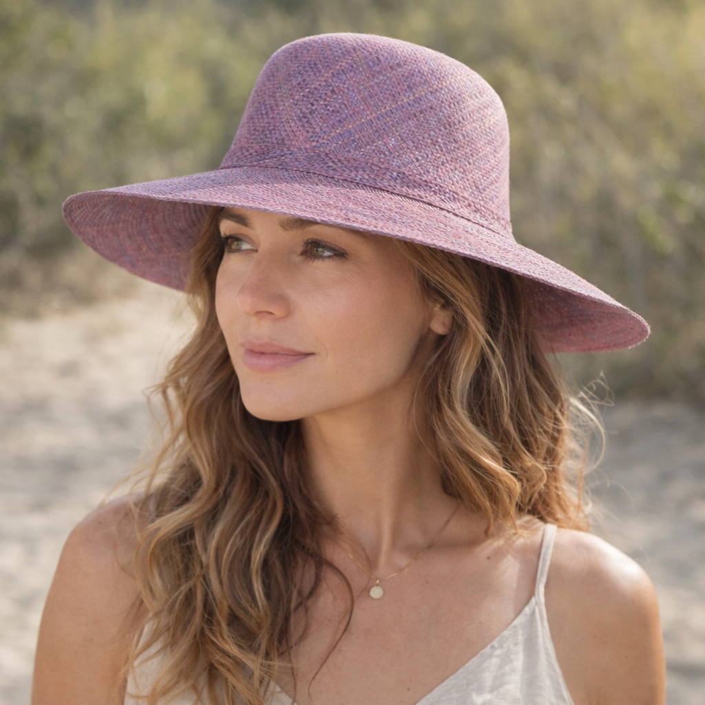 Handwoven Raffia Sun Hat in Lavender - Ethical, Lightweight & Travel-Ready.