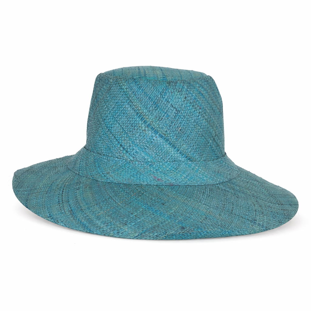 Handwoven Raffia Sun Hat in Pacific Blue - Ethical, Lightweight & Travel-Ready.