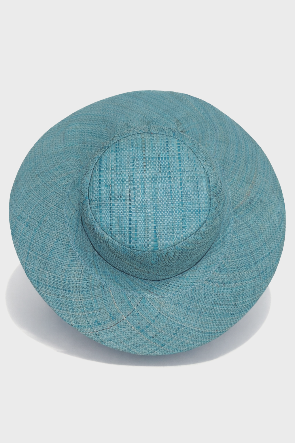 Flat Brim Raffia Sunhat in Pacific Blue Madagascan