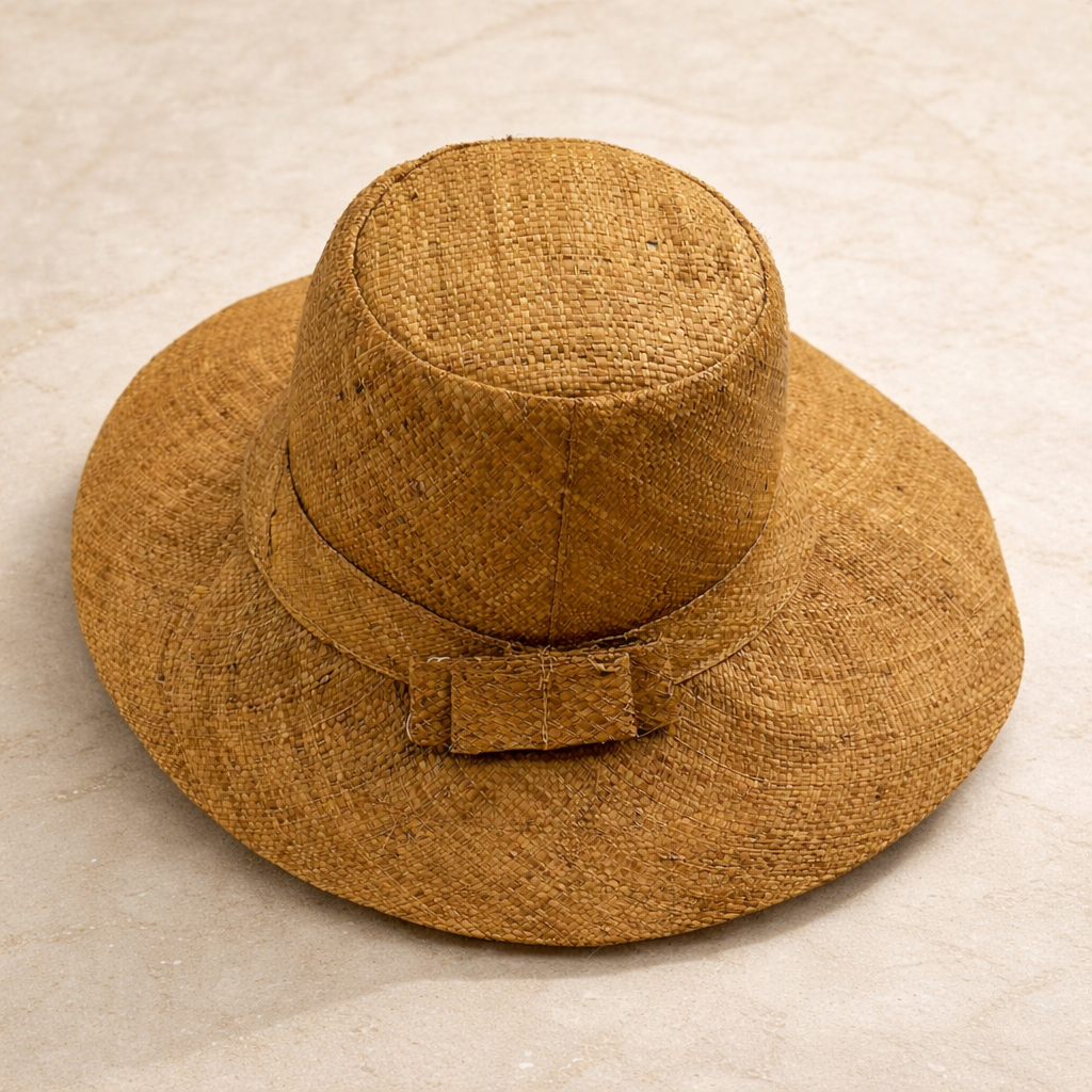 Handwoven Raffia Sun Hat in Tan - Ethical, Lightweight & Travel-Ready.