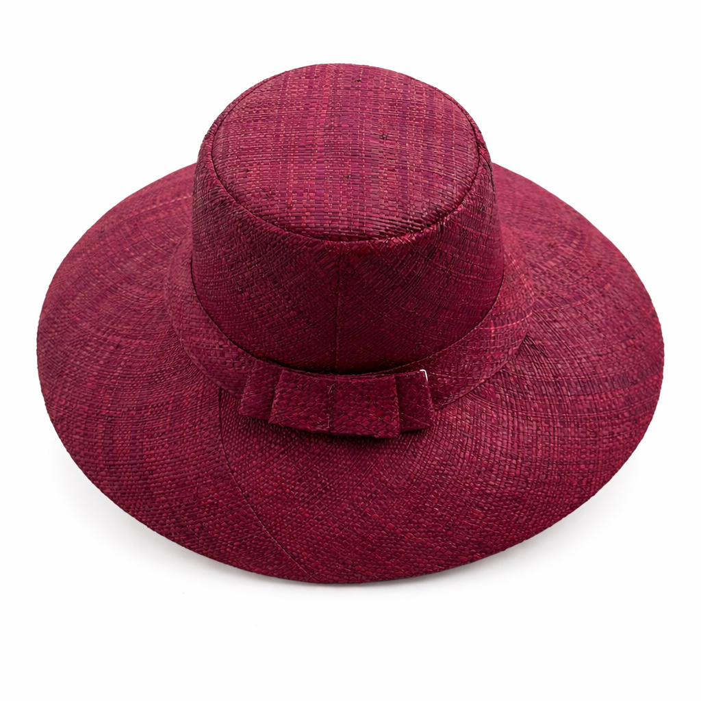 Handwoven Raffia Sun Hat in Wine - Ethical, Lightweight & Travel-Ready.