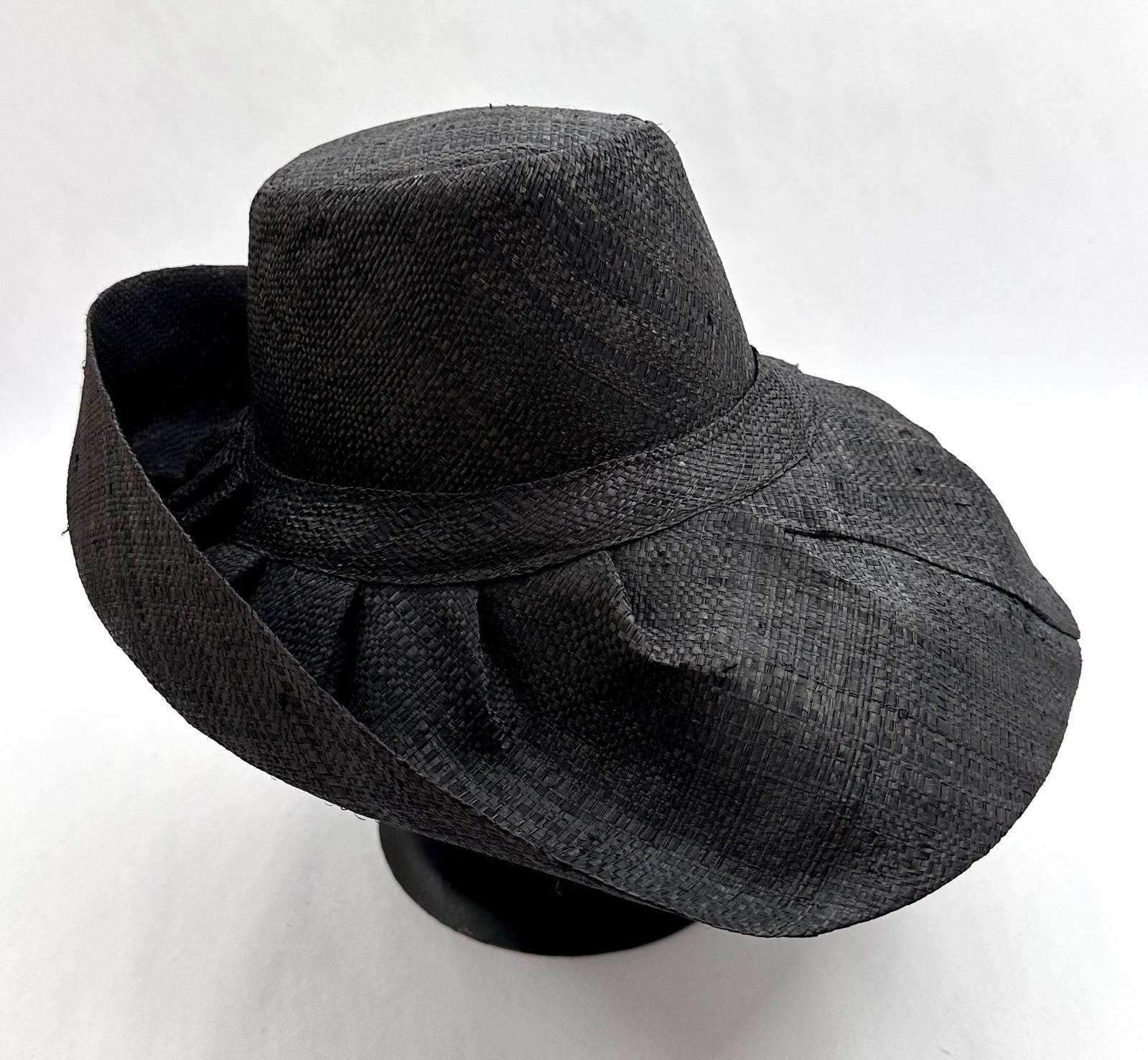 Raffia Curve Brim Hat Standard Brim in Black Colour