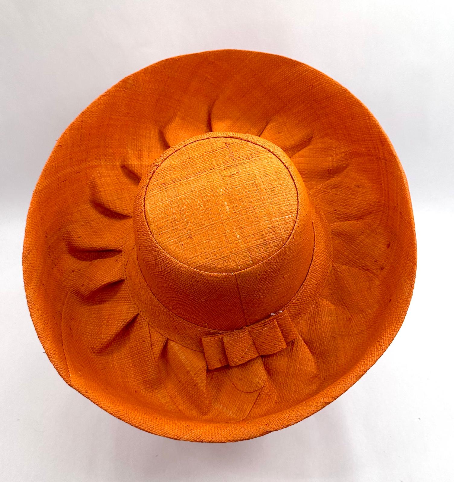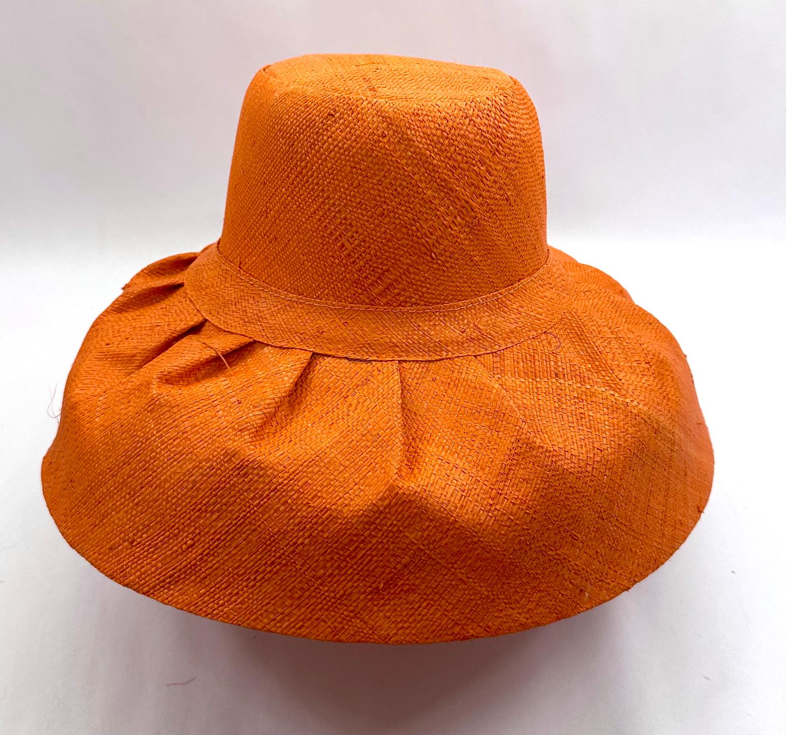 Raffia Curve Brim Hat Standard Brim in Orange Colour