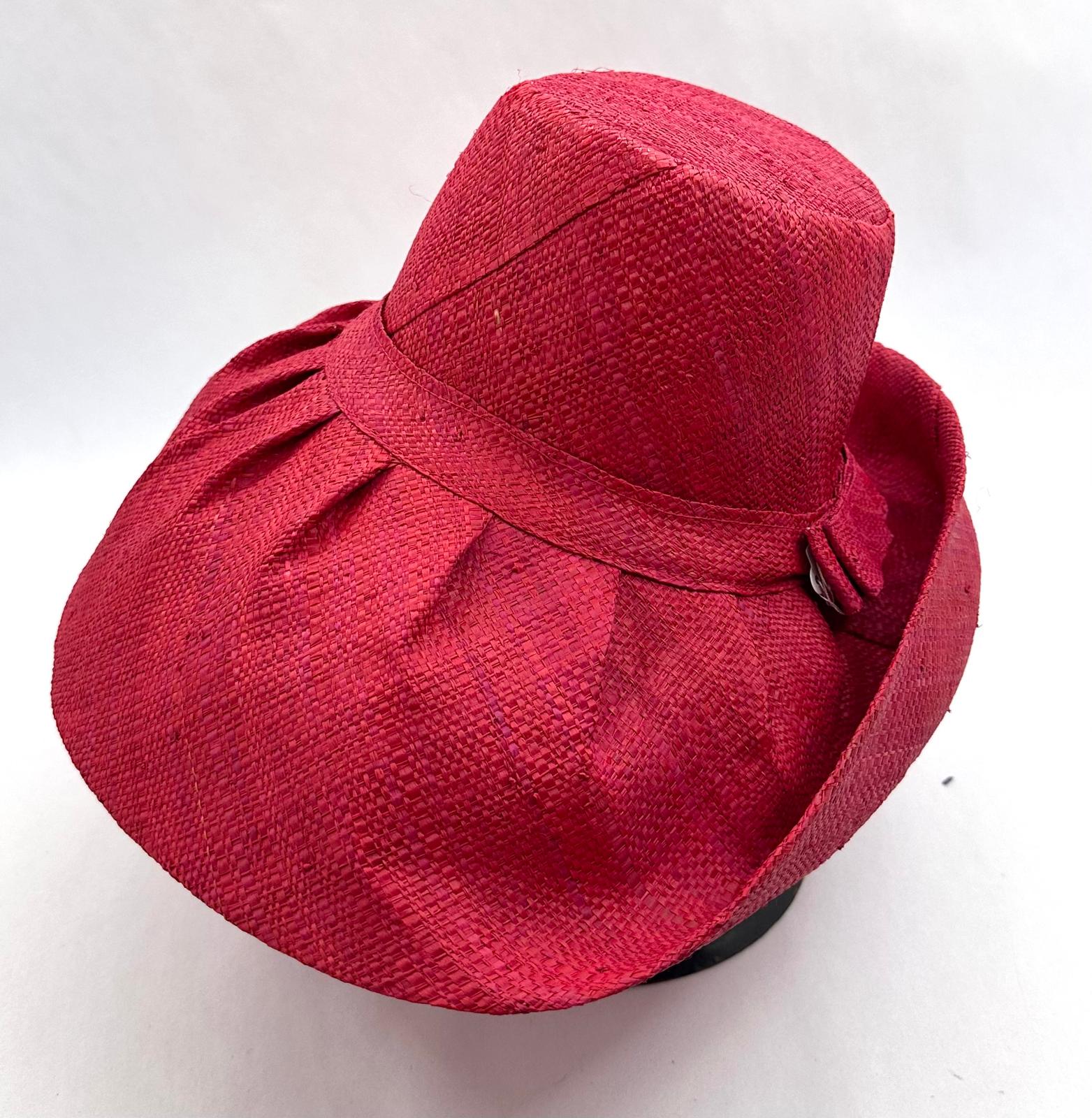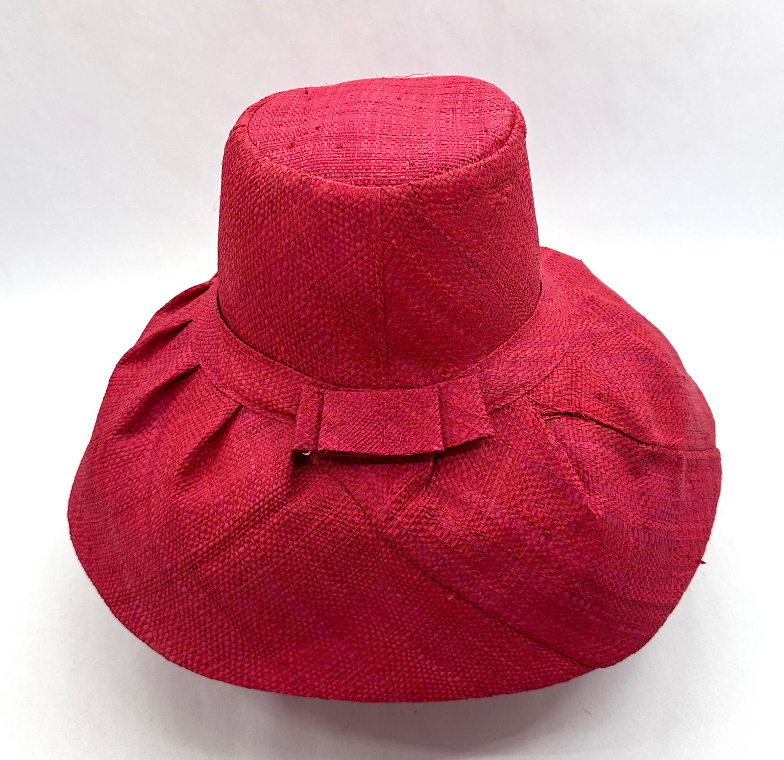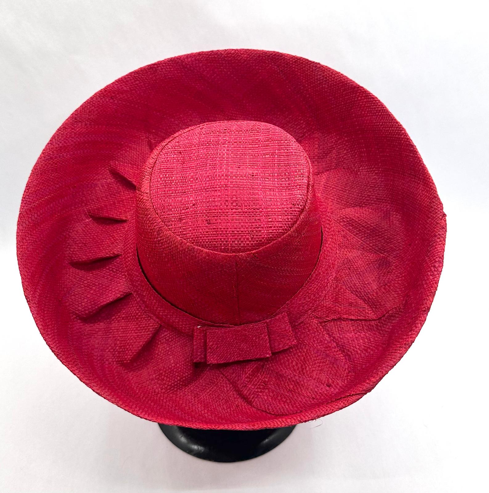 Raffia Curve Brim Hat Standard Brim in Red Colour