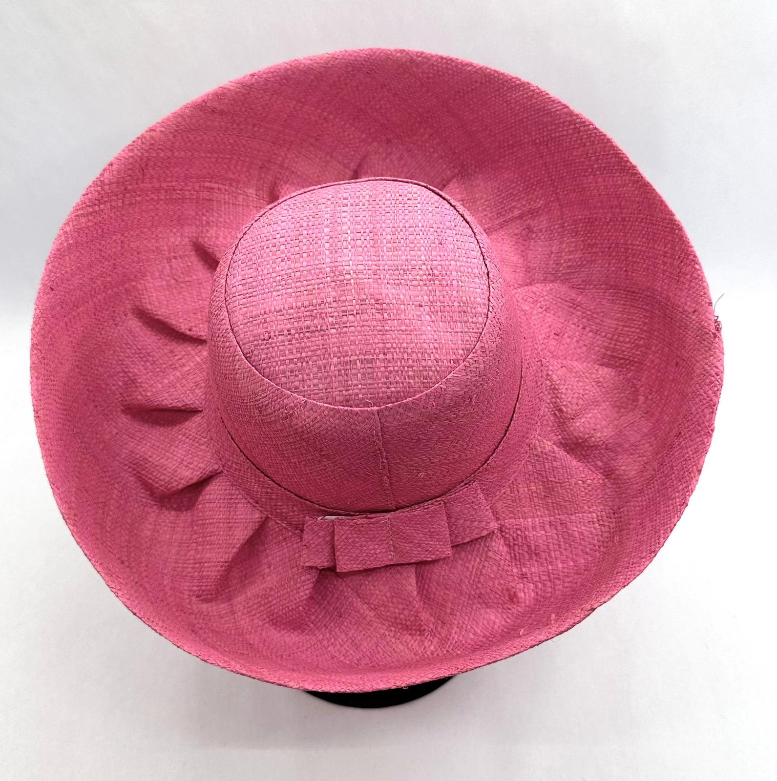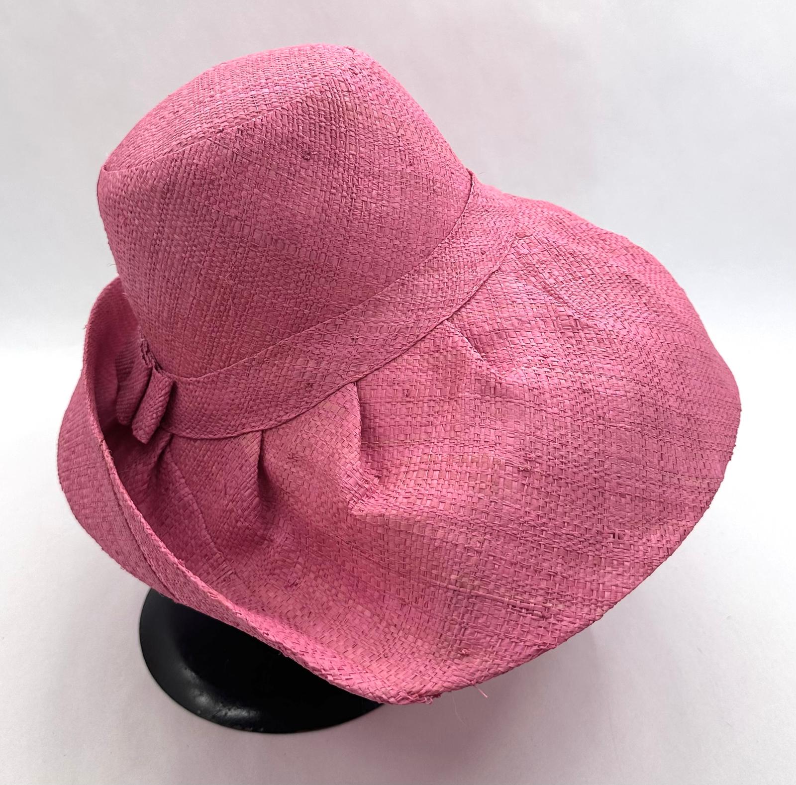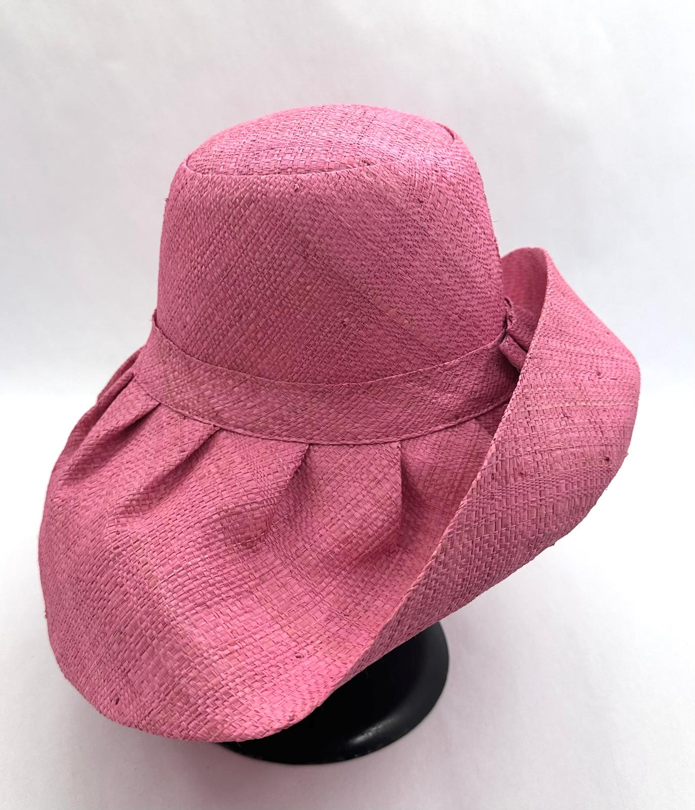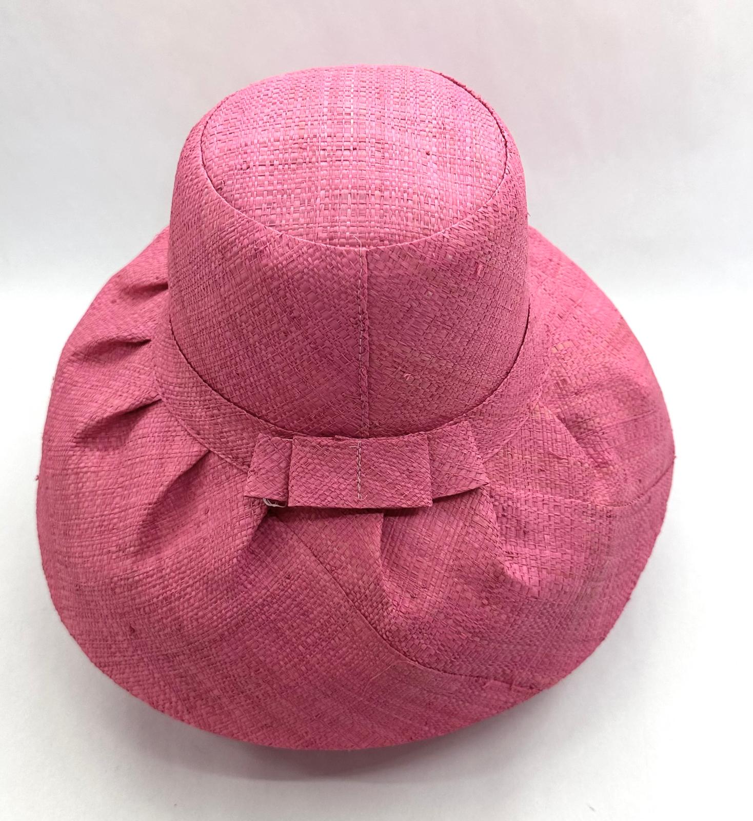 Raffia Curve Brim Hat Standard Brim in Rose Pink Colour