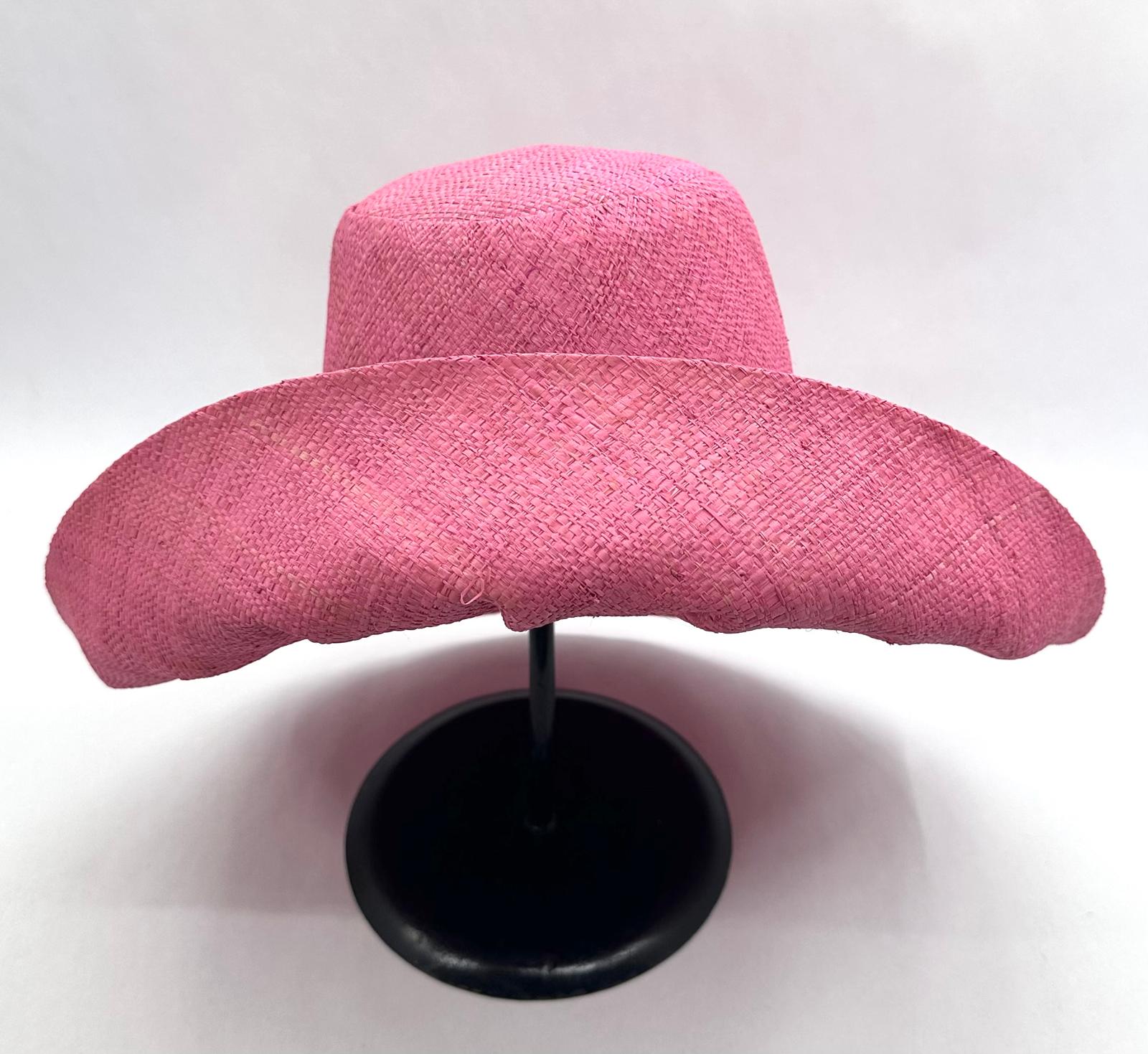 Raffia Curve Brim Hat Standard Brim in Rose Pink Madagascan