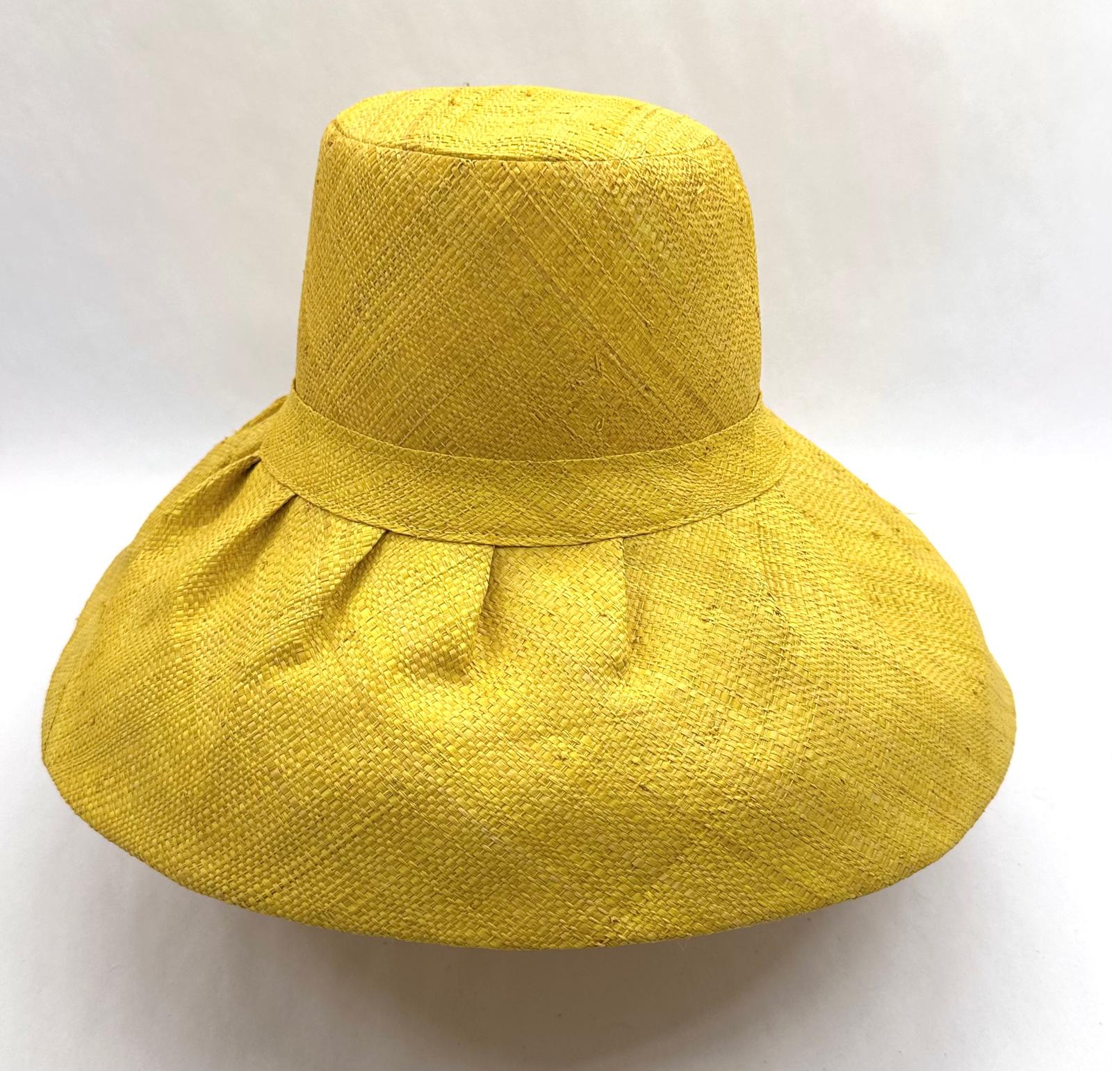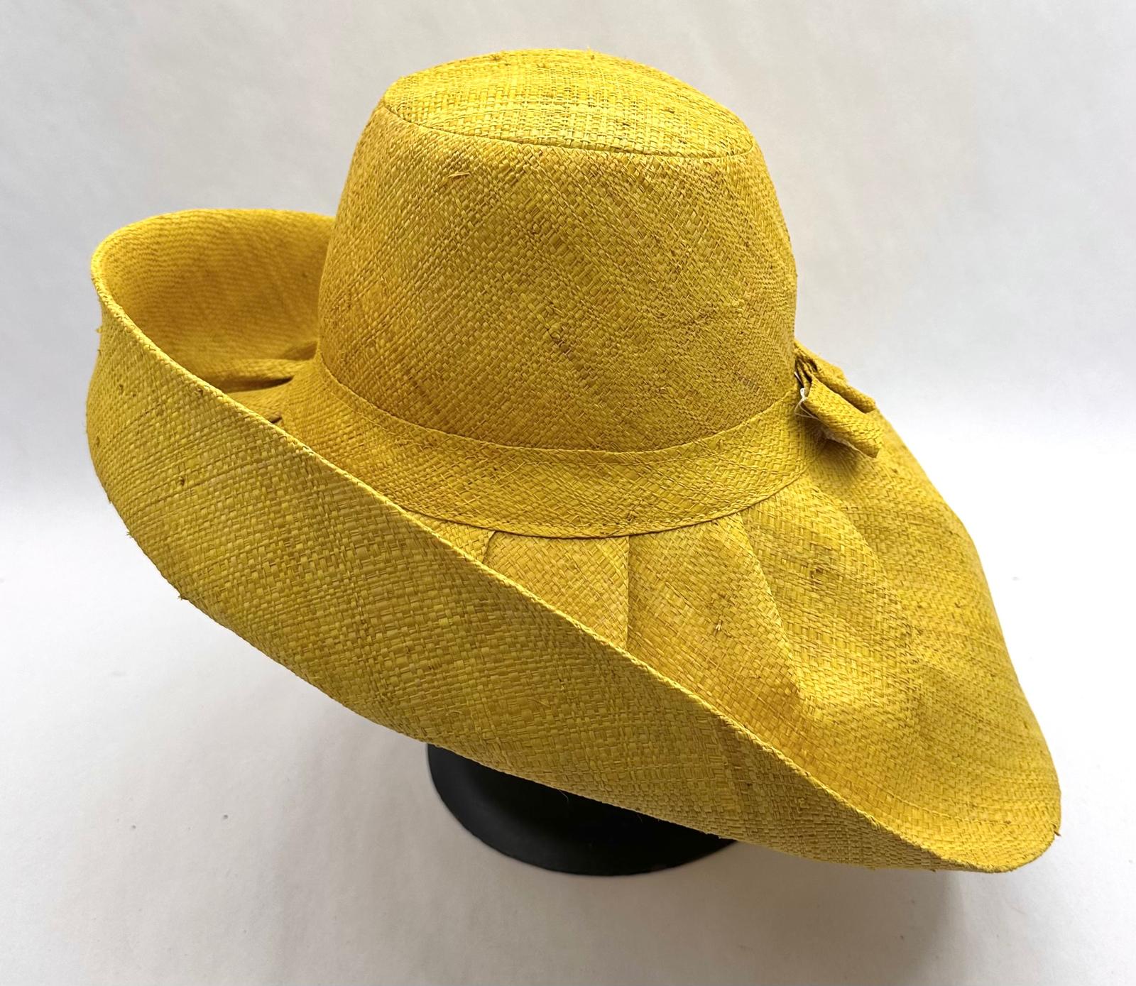Raffia Curve Brim Hat Standard Brim in Yellow Colour