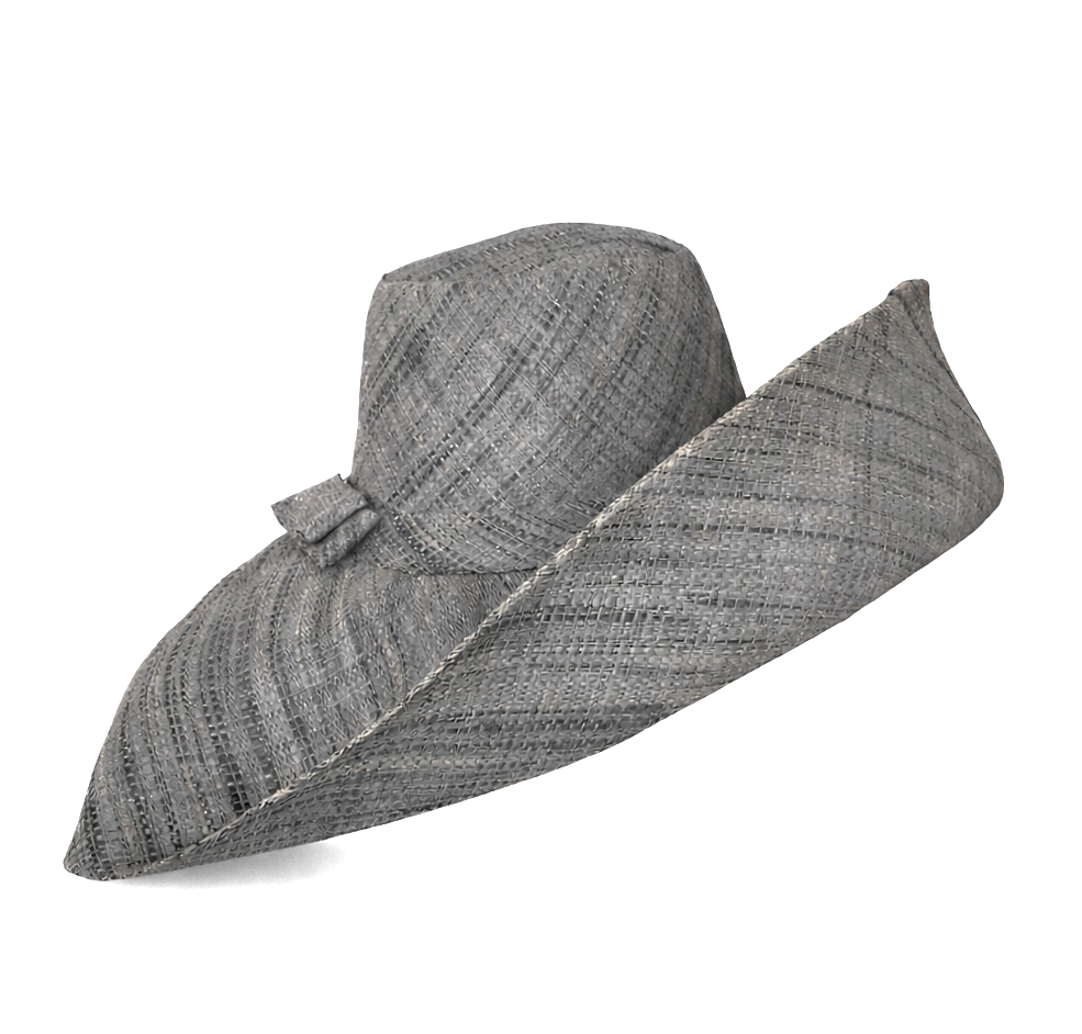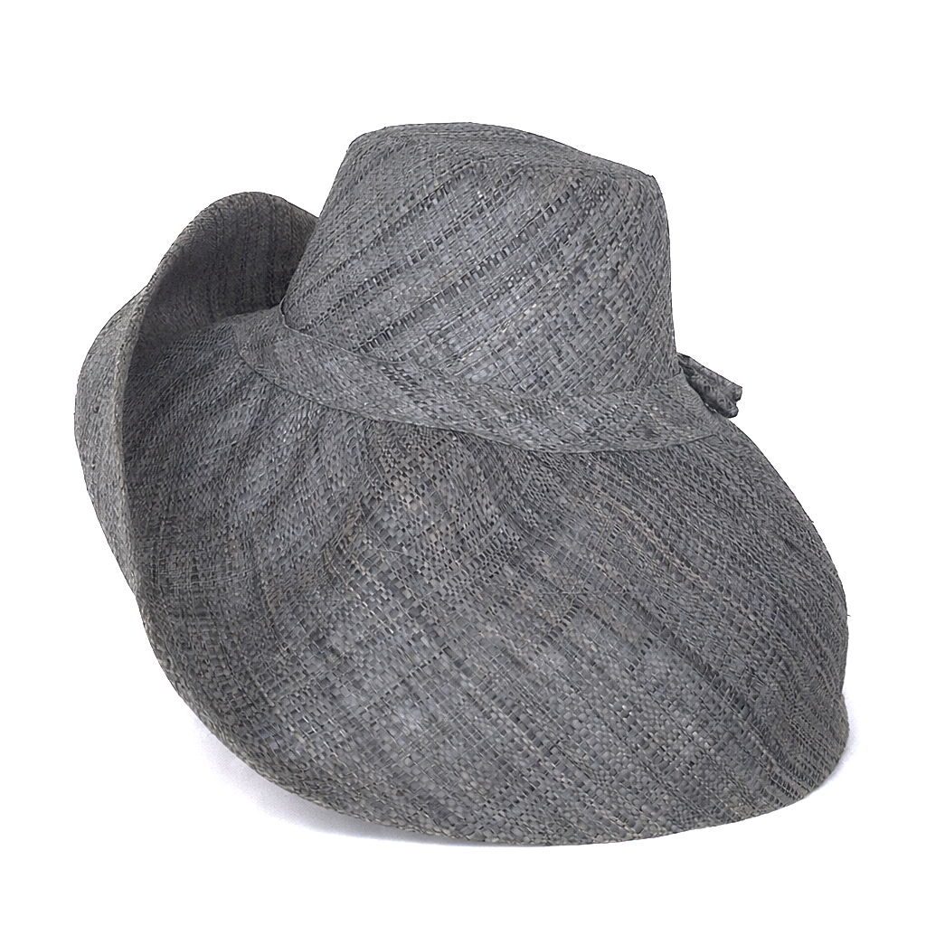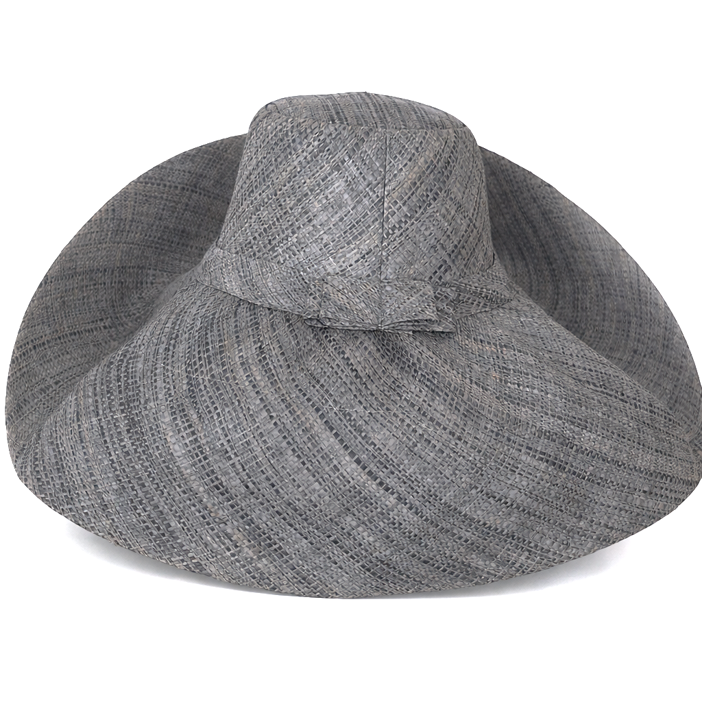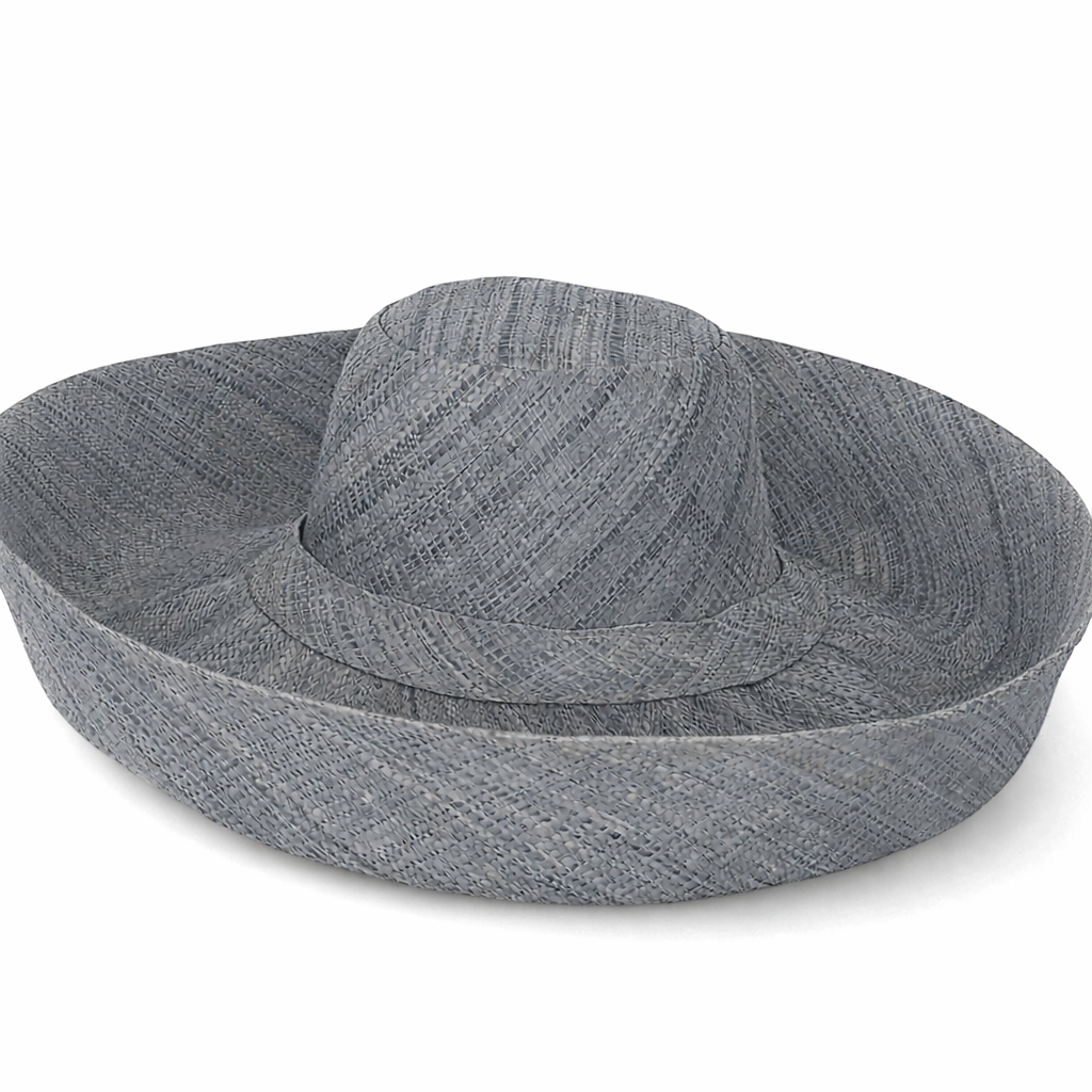 Handwoven Raffia Curve Brim Hat (Large Brim) in Anchor Grey - Ethical, Lightweight & Travel-Ready.