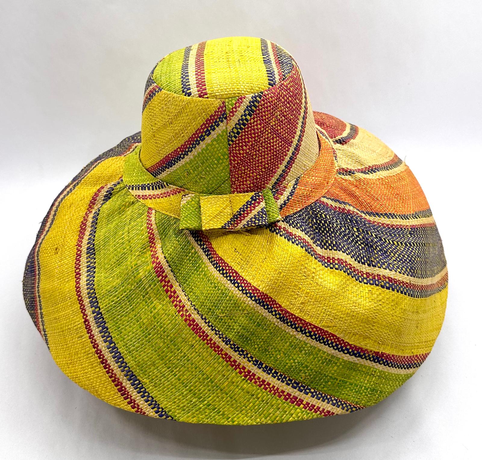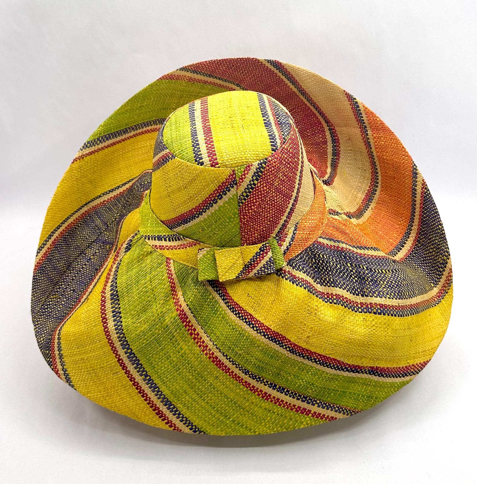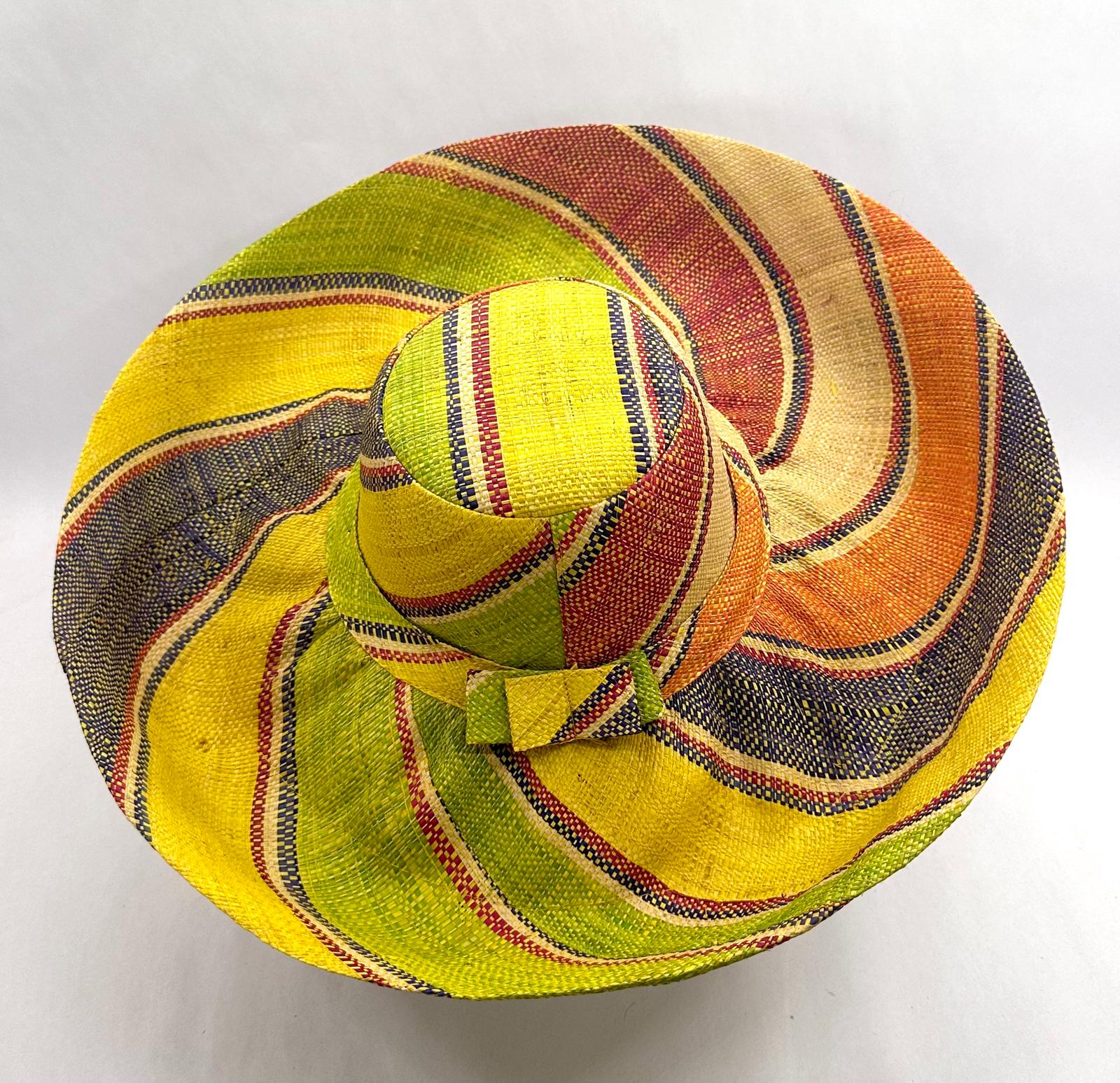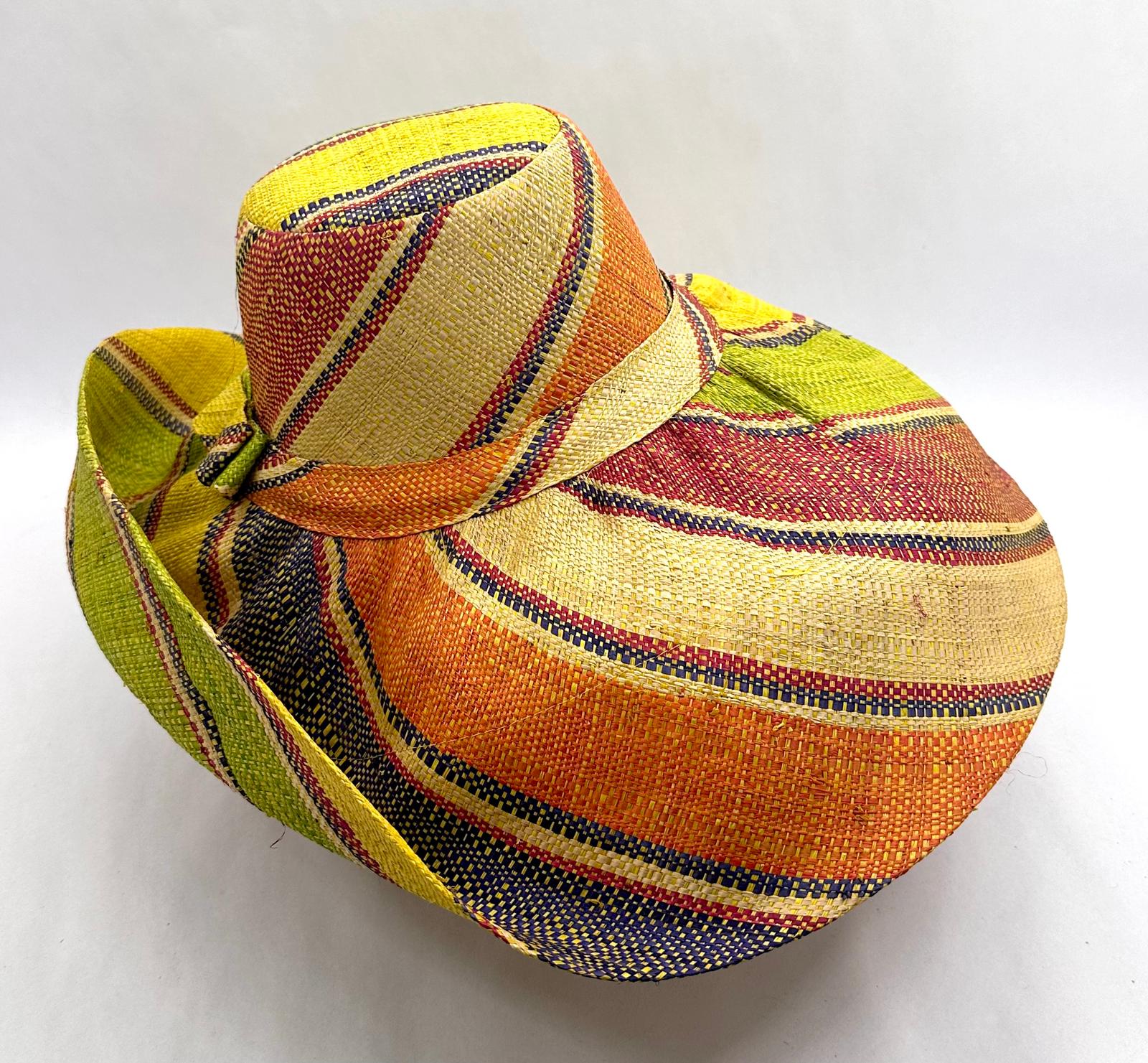 Raffia Curve Large Brim Hat in Jelly Bean Stripes