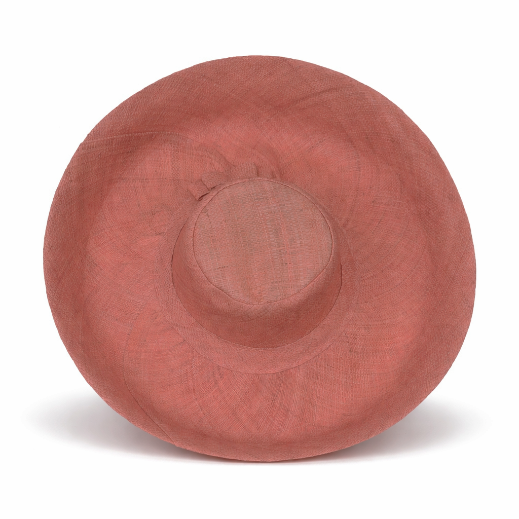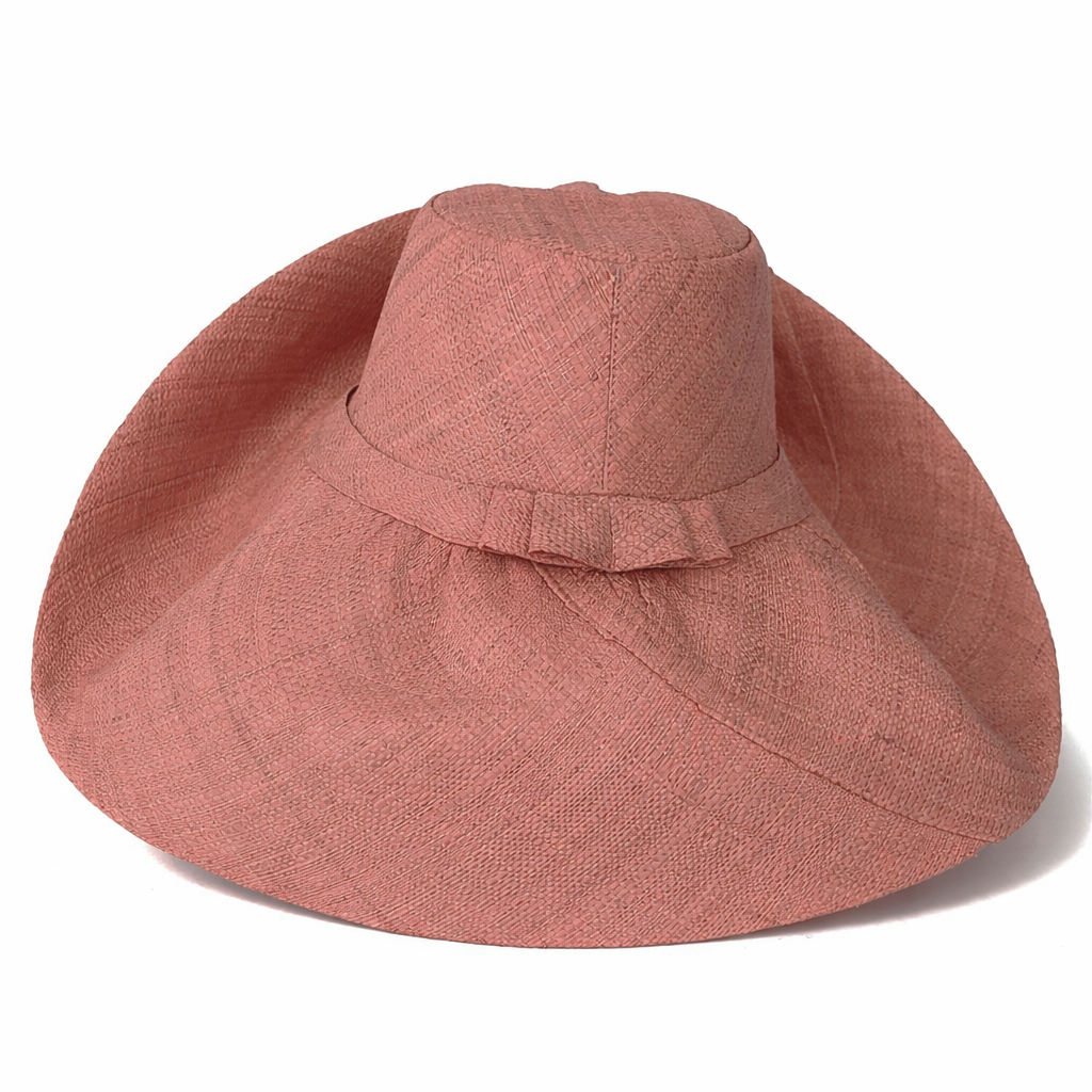 Handwoven Raffia Curve Brim Hat (Large Brim) in Melon Pink - Ethical, Lightweight & Travel-Ready.