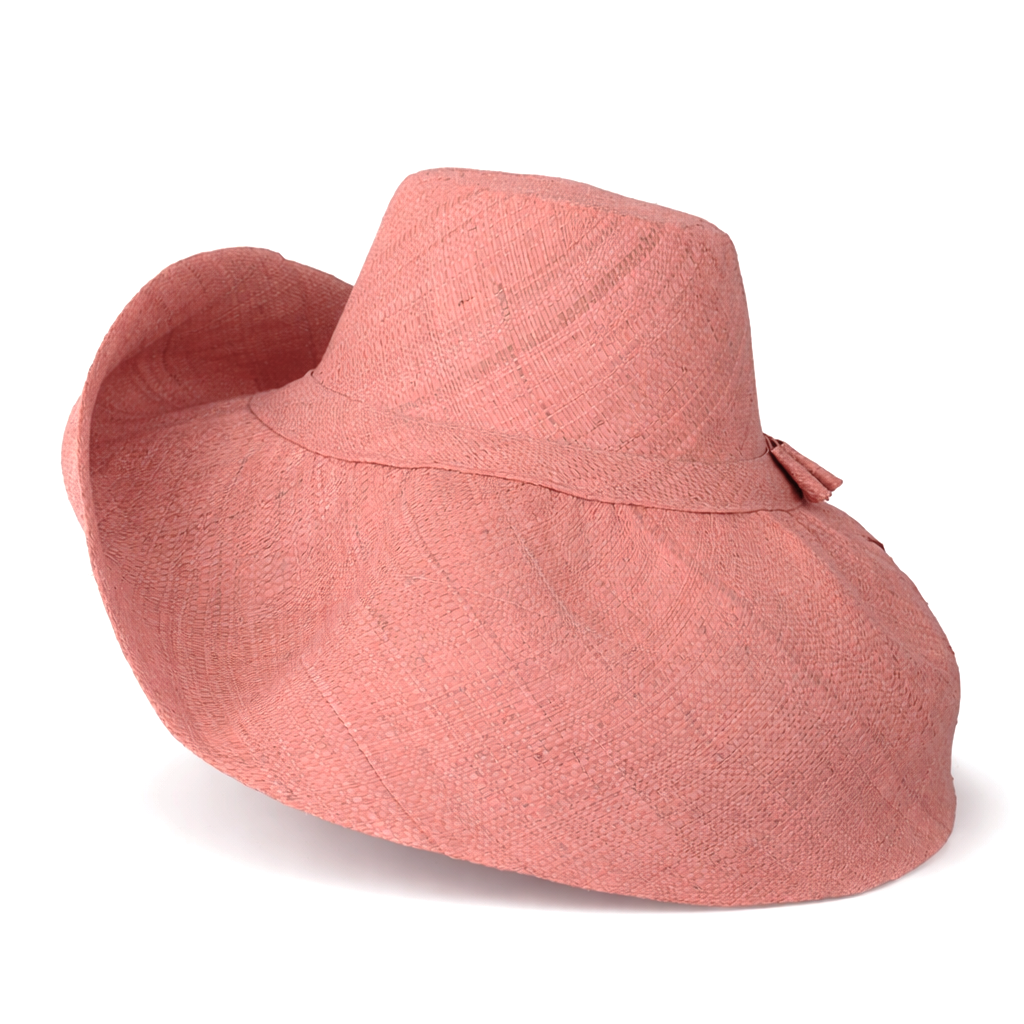 Raffia Curve Brim Hat Large Brim in Melon Pink Madagascan
