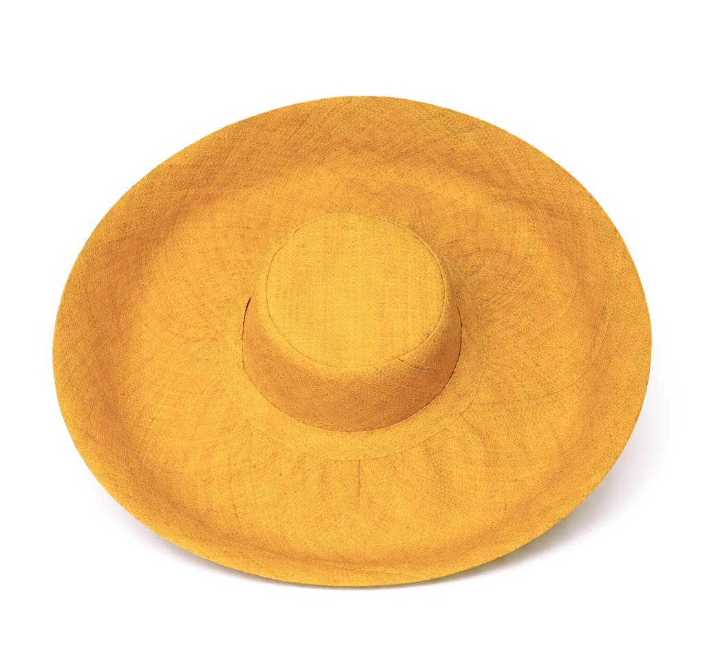 Handwoven Raffia Curve Brim Hat (Large Brim) in Corn Yellow - Ethical, Lightweight & Travel-Ready.