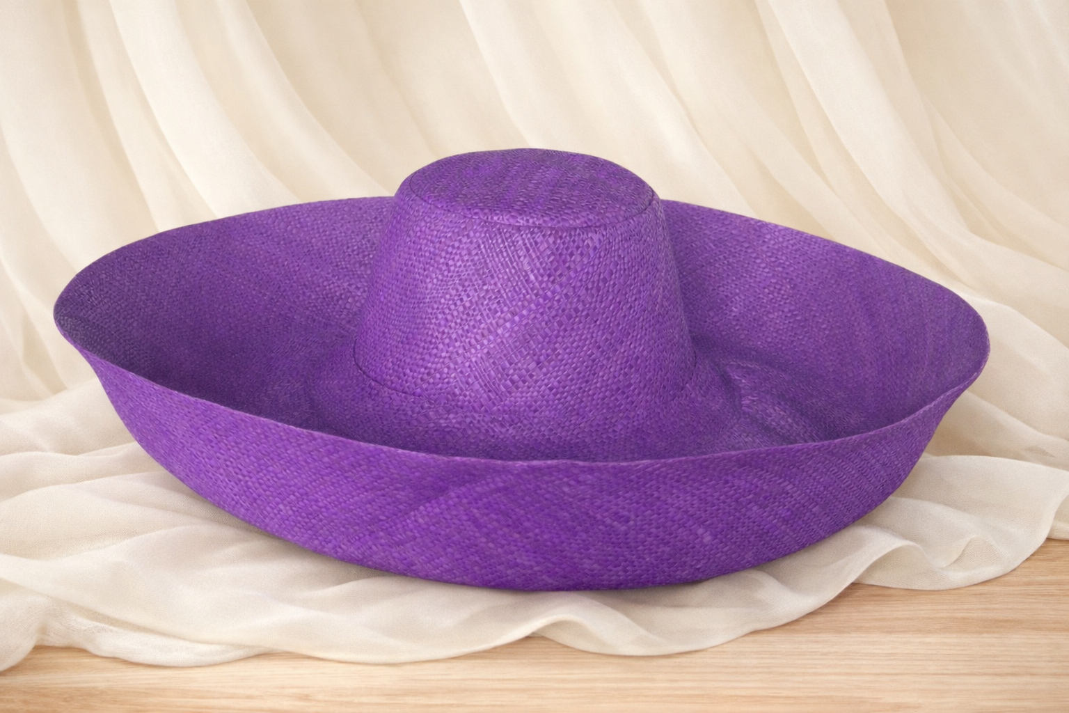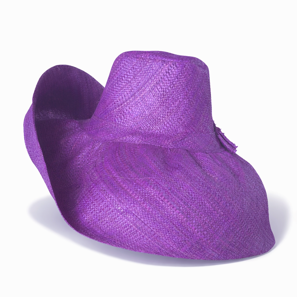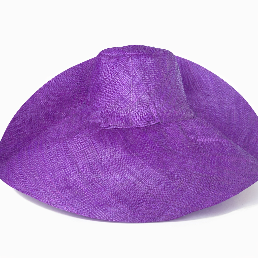 Handwoven Raffia Curve Brim Hat (Large Brim) in Dark Iris - Ethical, Lightweight & Travel-Ready.