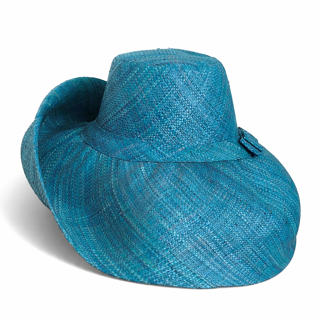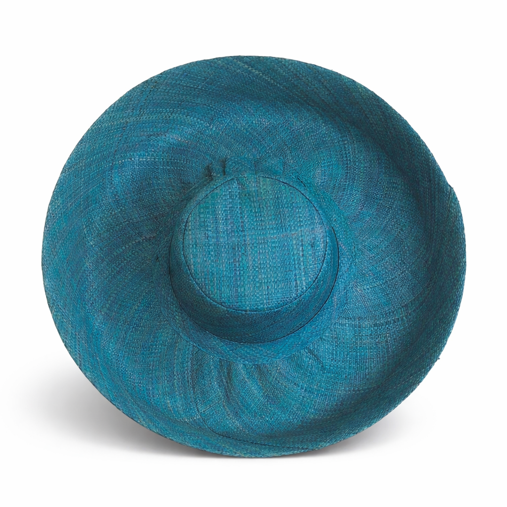 Handwoven Raffia Curve Brim Hat (Large Brim) in Dark Peacock Blue - Ethical, Lightweight & Travel-Ready.