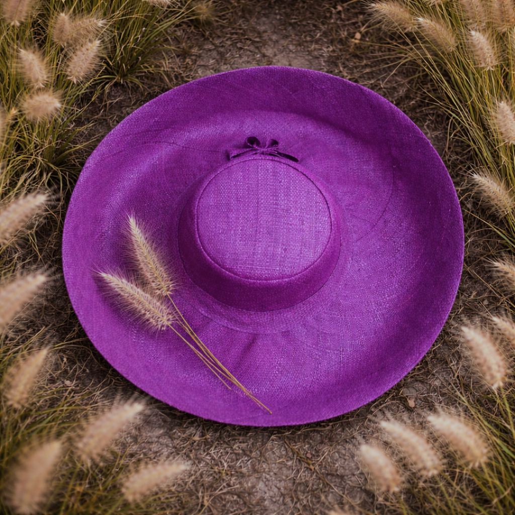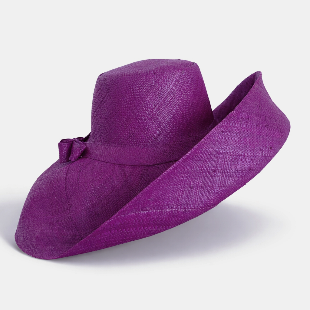 Handwoven Raffia Curve Brim Hat (Large Brim) in Grape - Ethical, Lightweight & Travel-Ready.