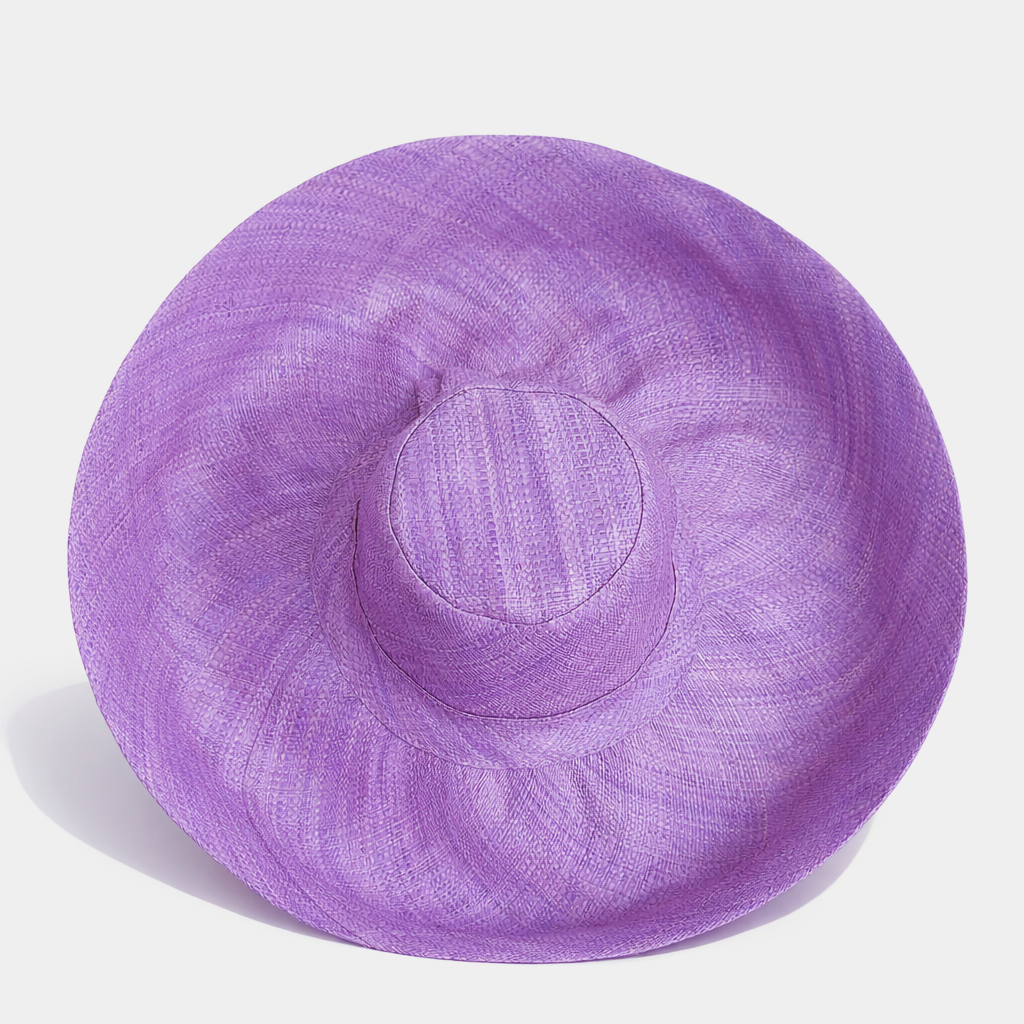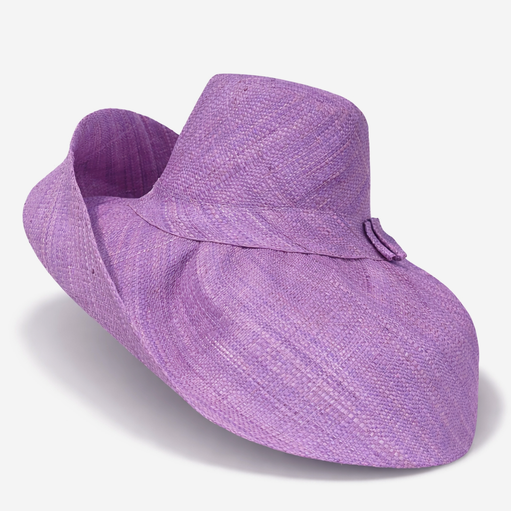 Handwoven Raffia Curve Brim Hat (Large Brim) in Lavender Water - Ethical, Lightweight & Travel-Ready.