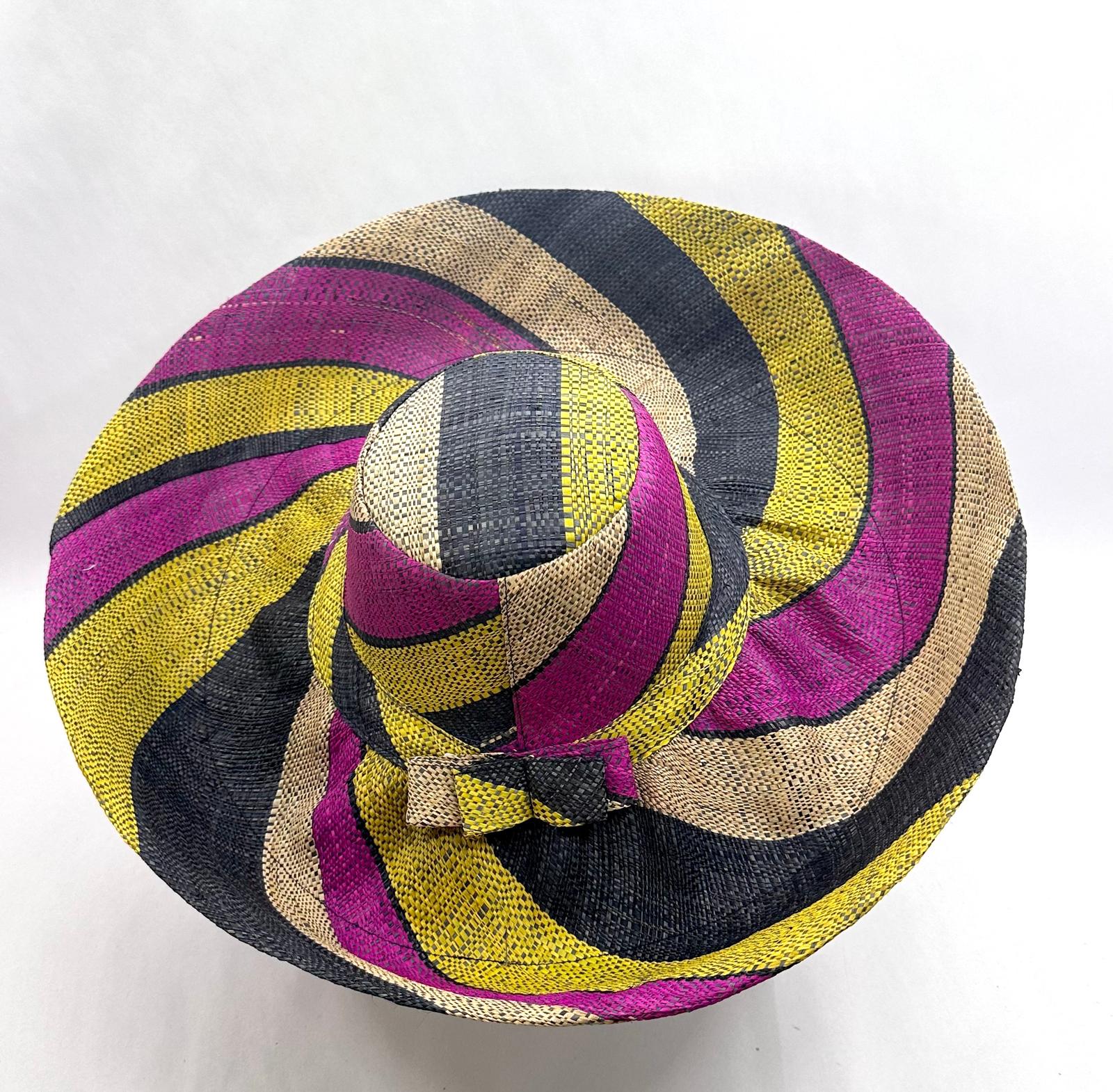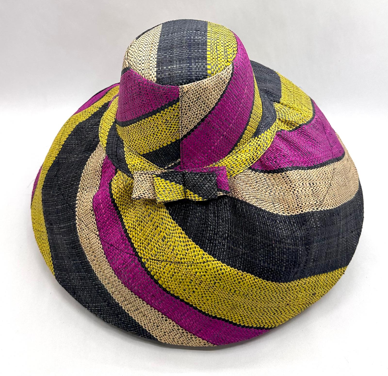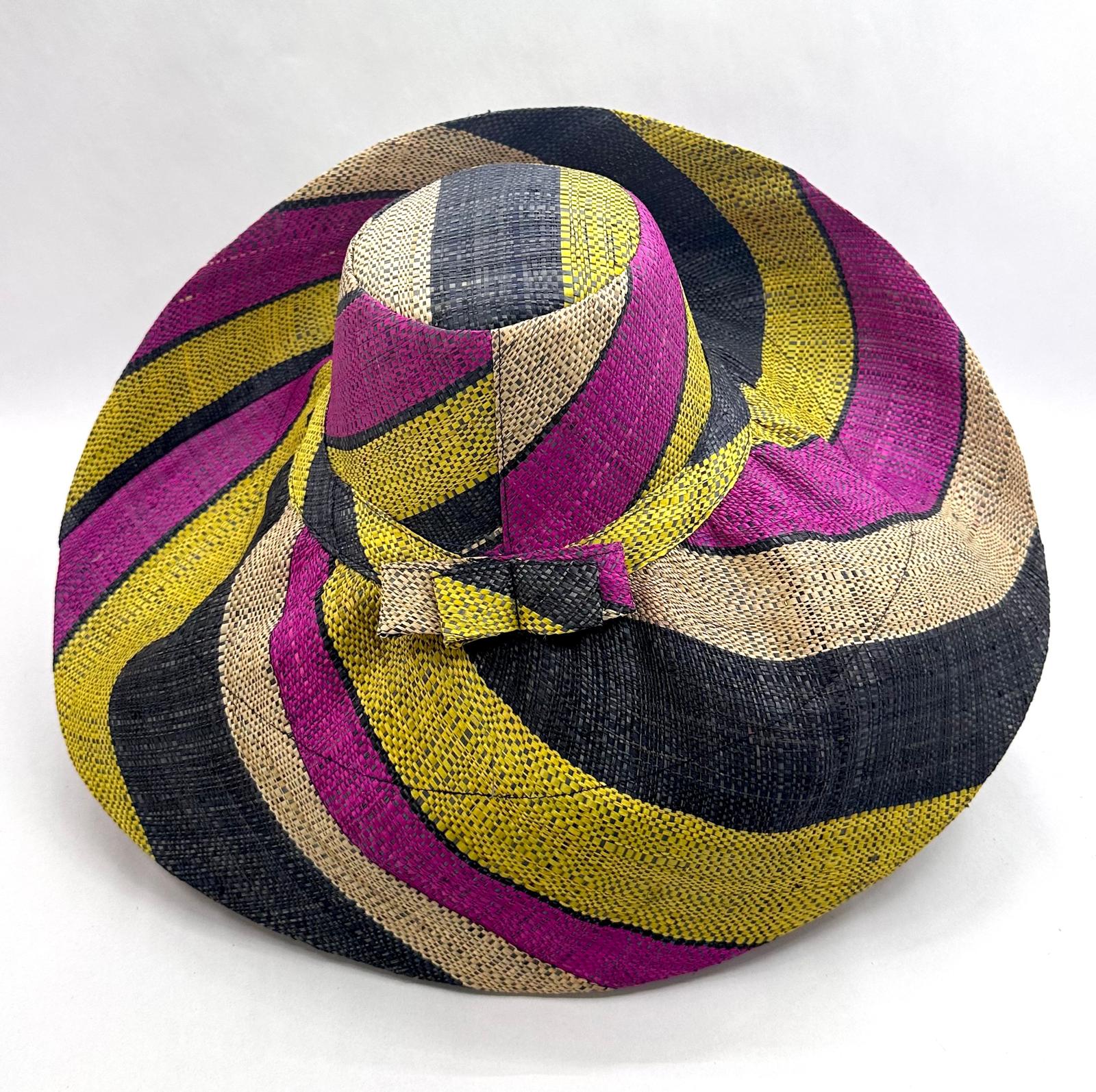 Raffia Curve Brim Hat Large Brim in Liquorice Allsorts Madagascan