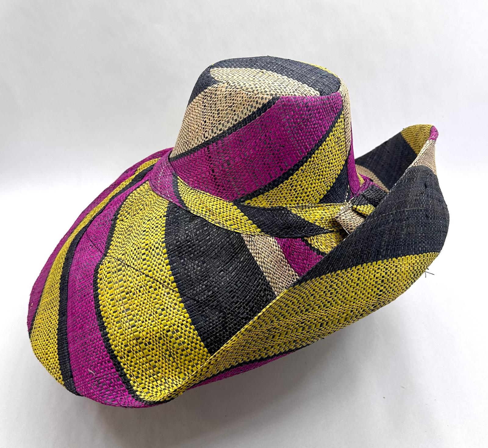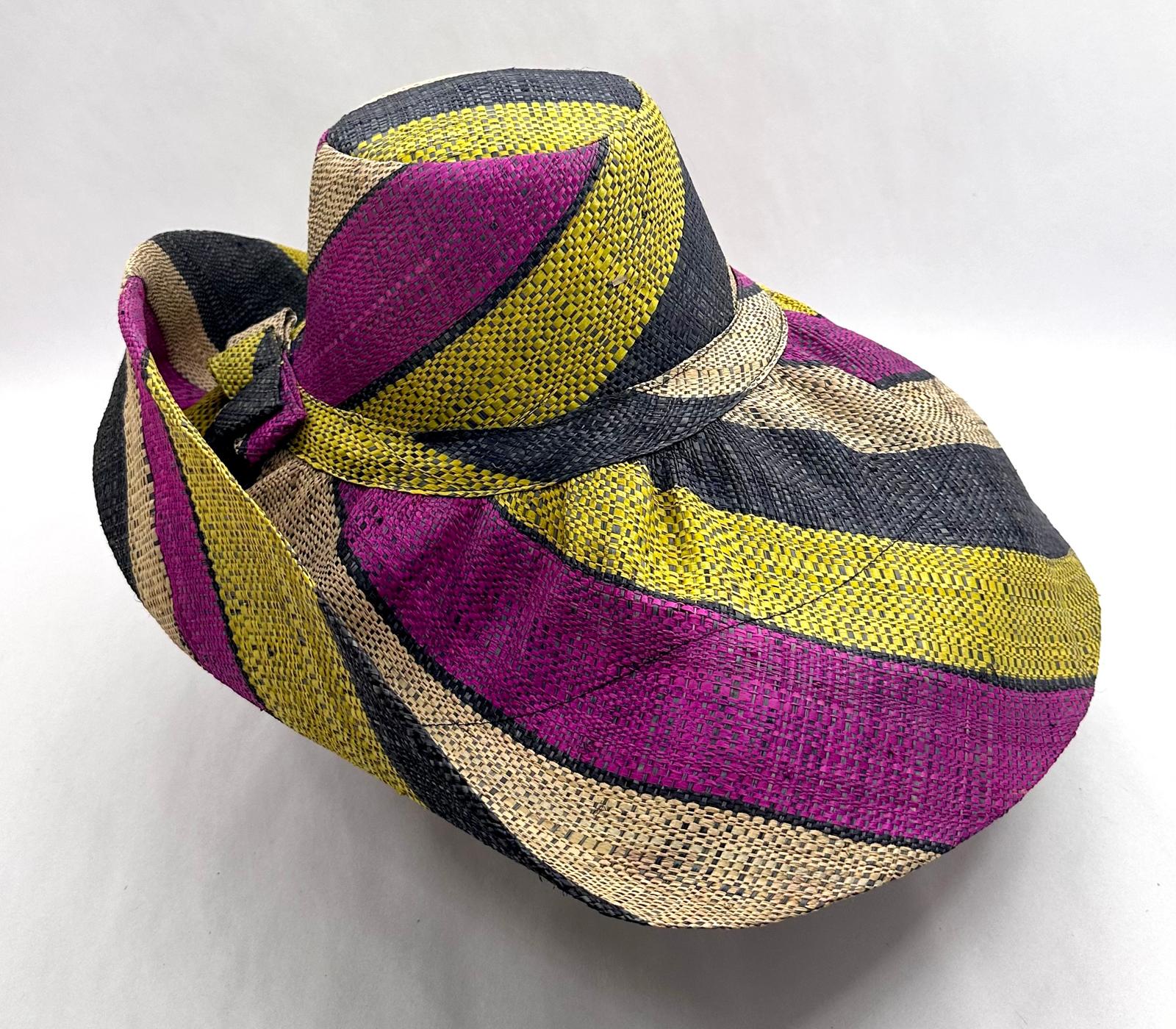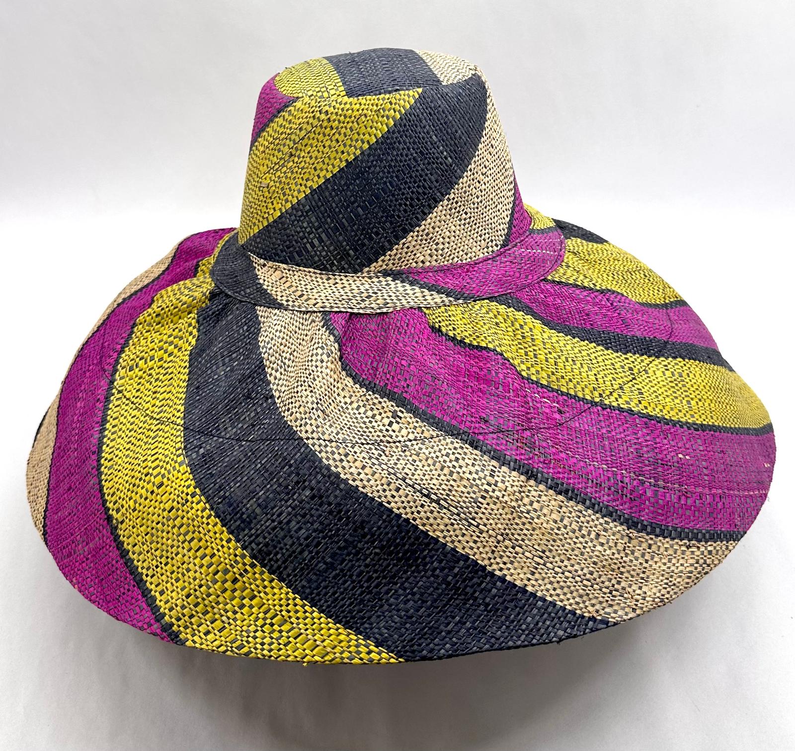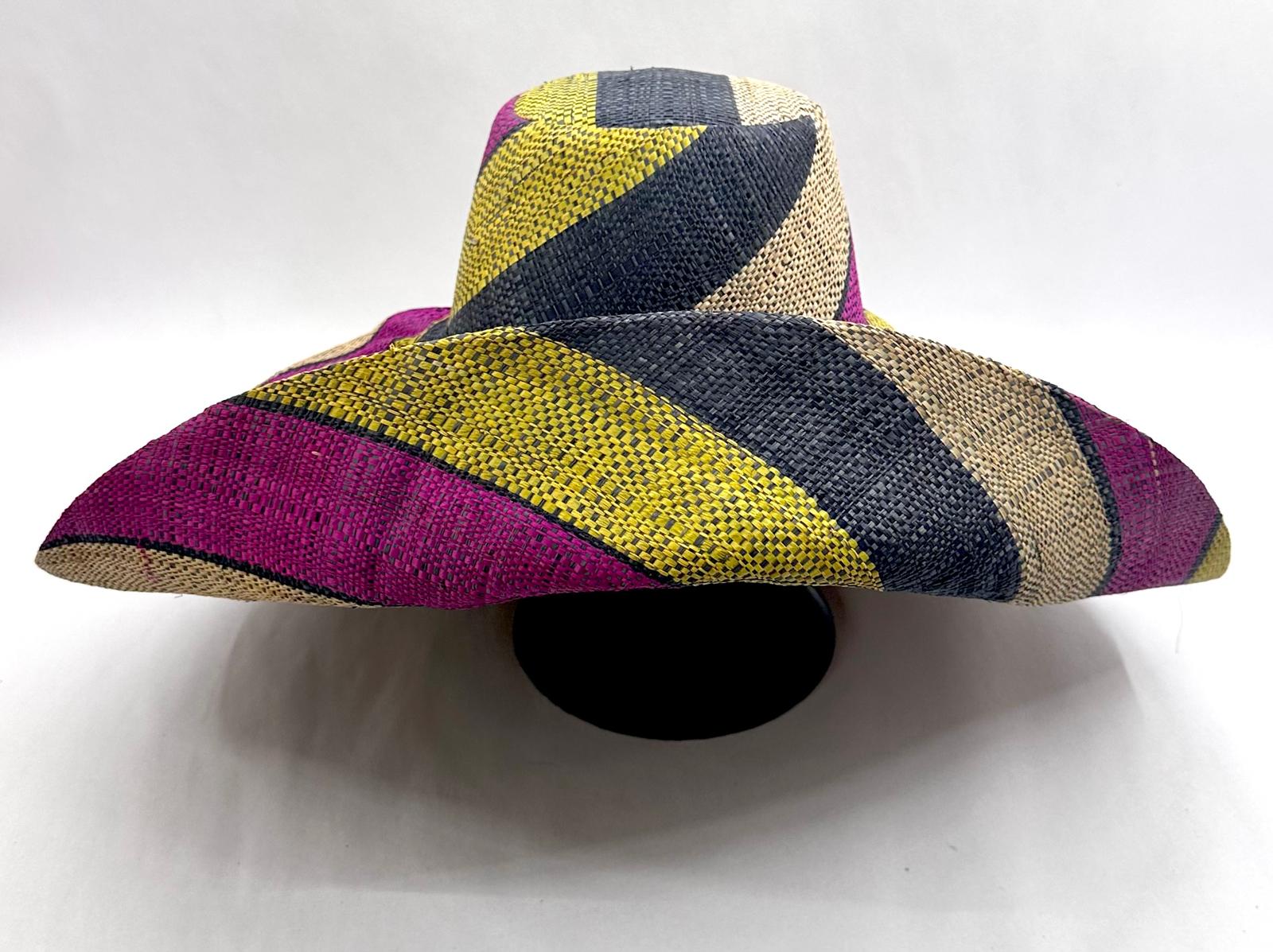 Raffia Curve Brim Hat Large Brim in Liquorice Allsorts Madagascan