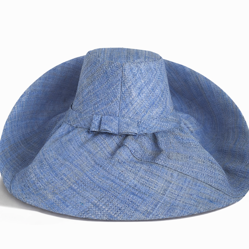 Handwoven Raffia Curve Brim Hat (Large Brim) in Light Steel Blue - Ethical, Lightweight & Travel-Ready.