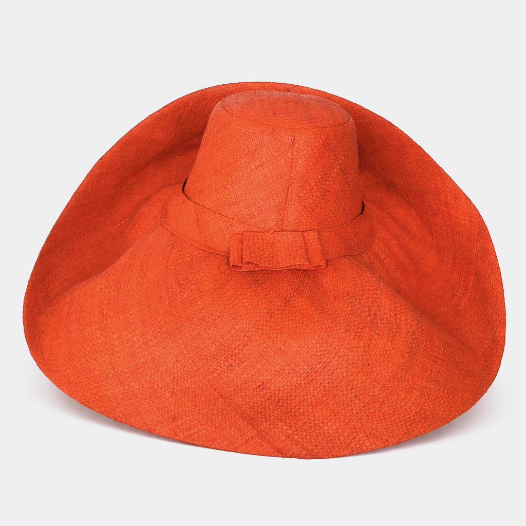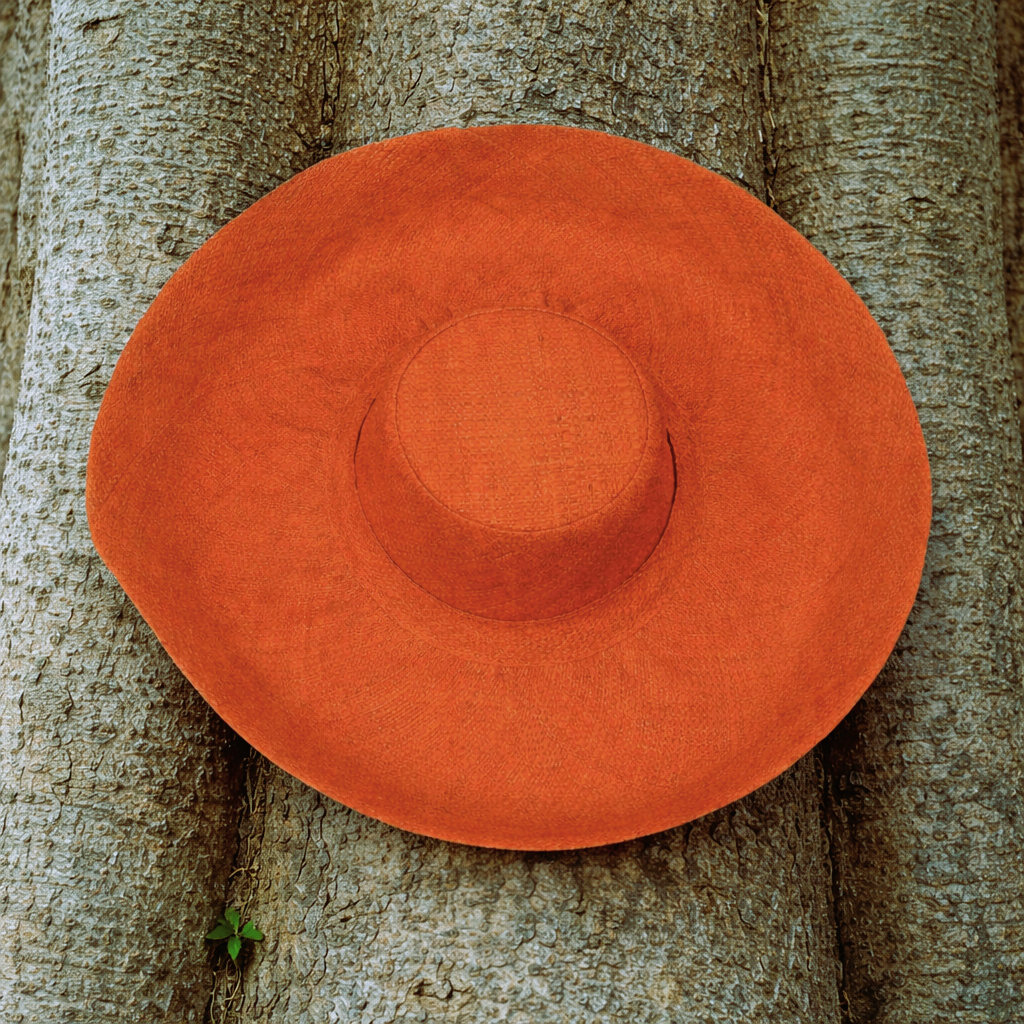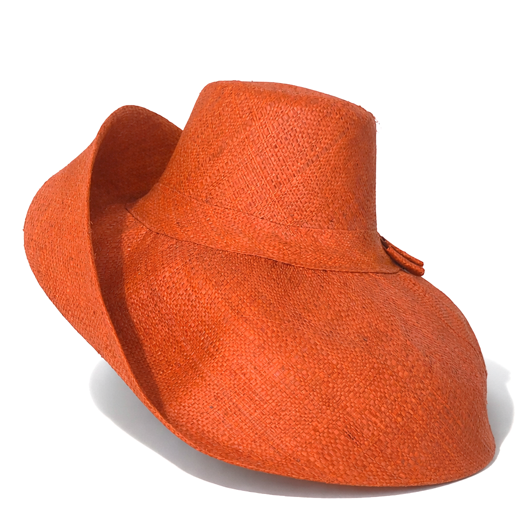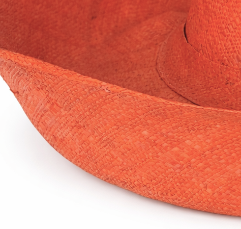 Handwoven Raffia Curve Brim Hat (Large Brim) in Orange - Ethical, Lightweight & Travel-Ready.