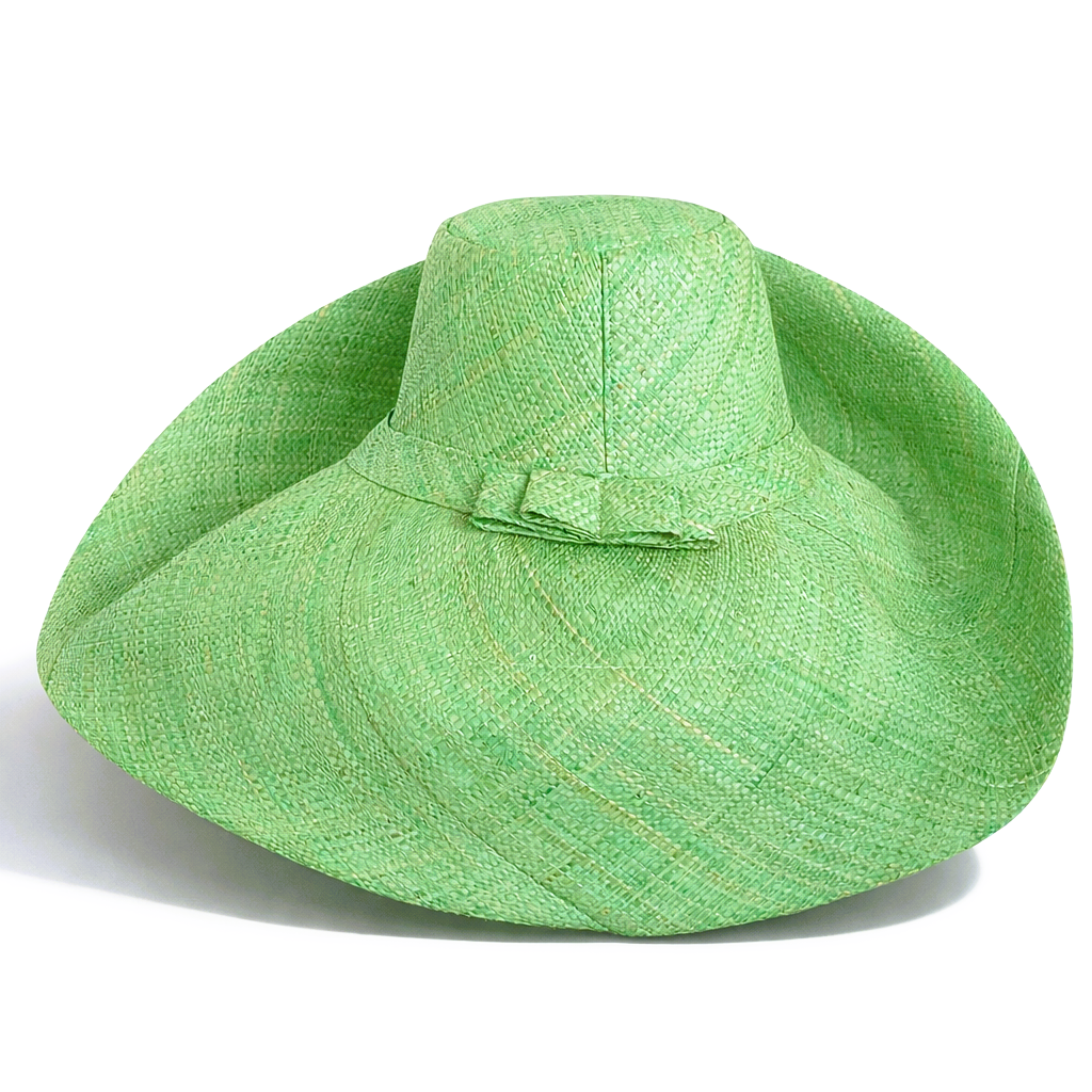 Handwoven Raffia Curve Brim Hat (Large Brim) in Pastel Green - Ethical, Lightweight & Travel-Ready.
