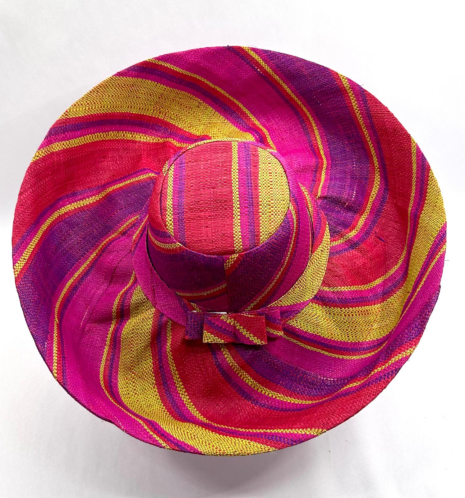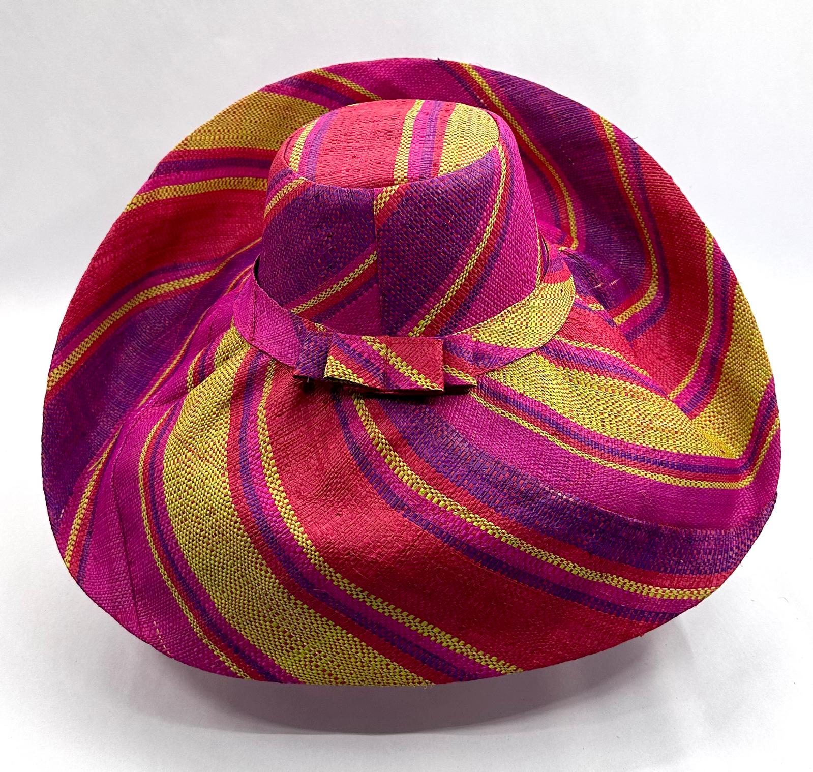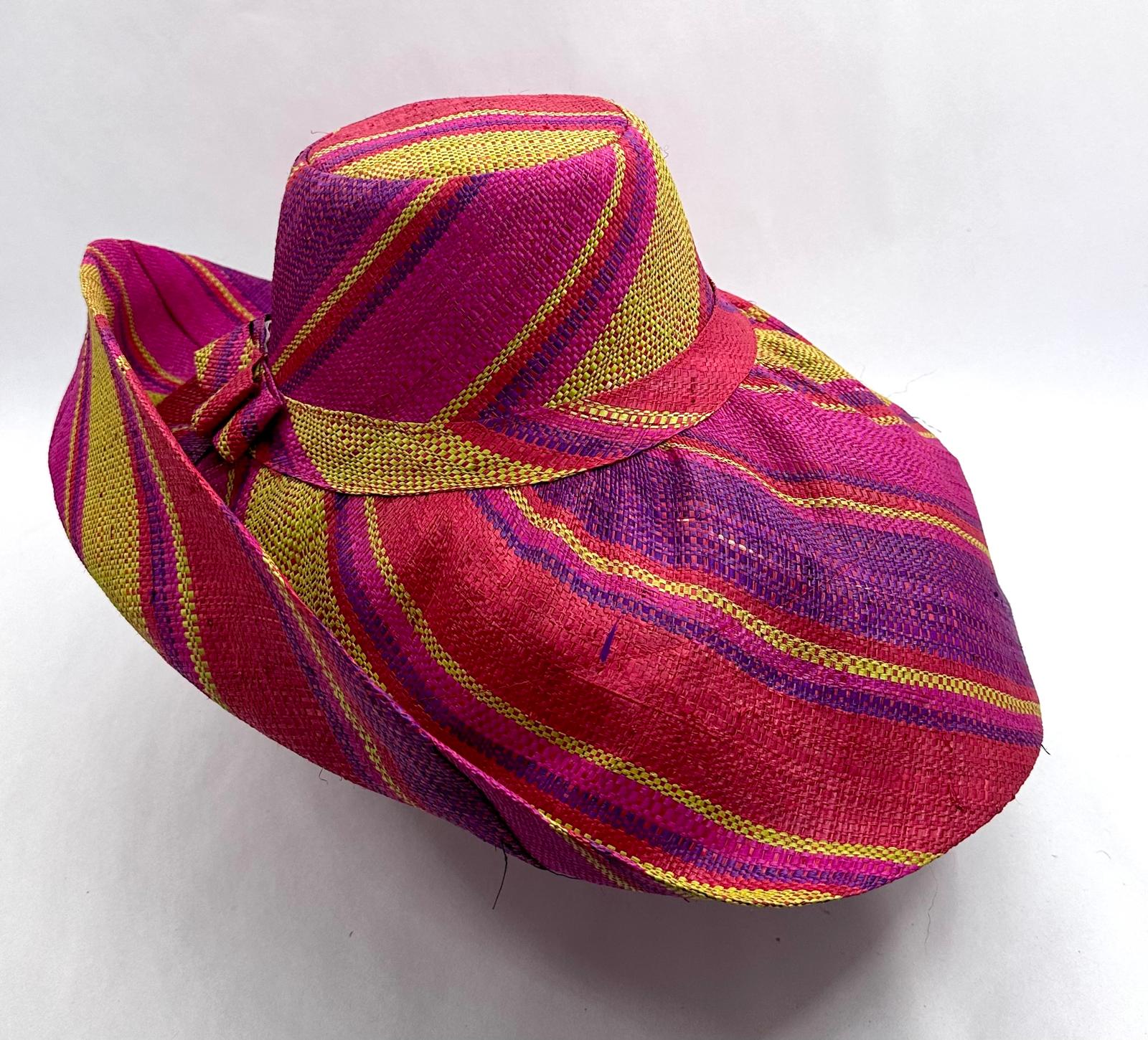 Raffia Curve Large Brim Hat in Rosy Apple Stripes