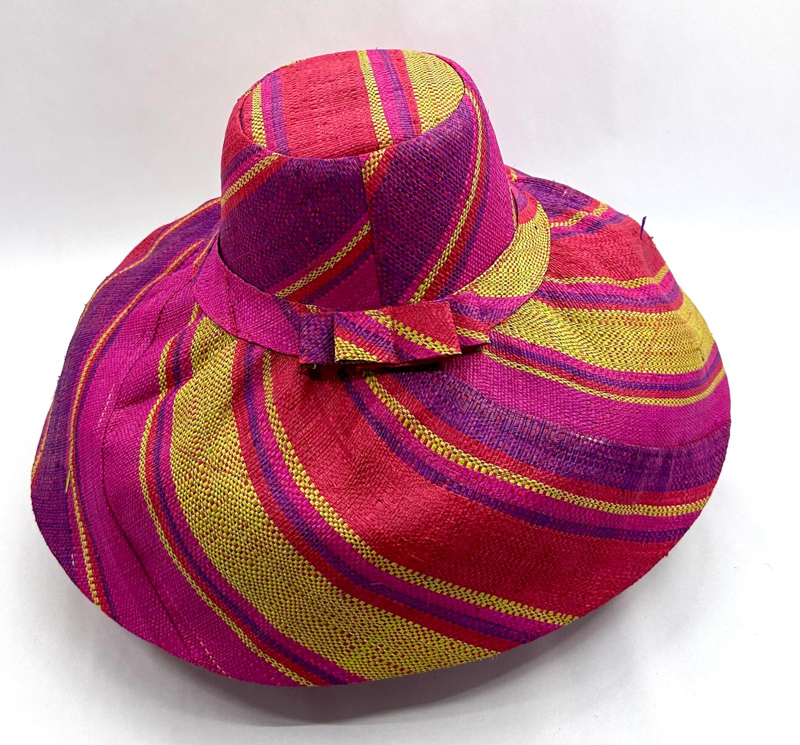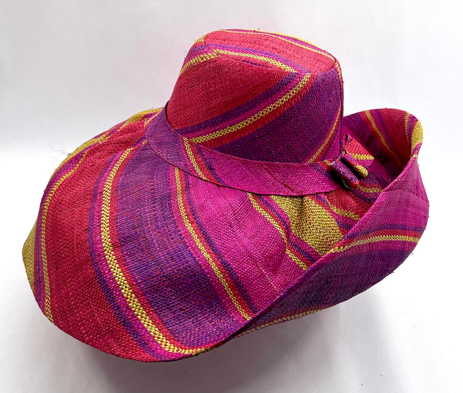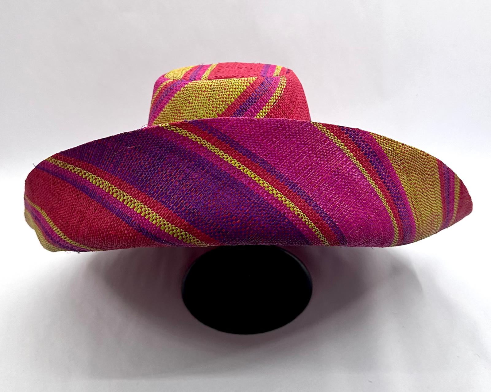 Raffia Curve Large Brim Hat in Rosy Apple Stripes