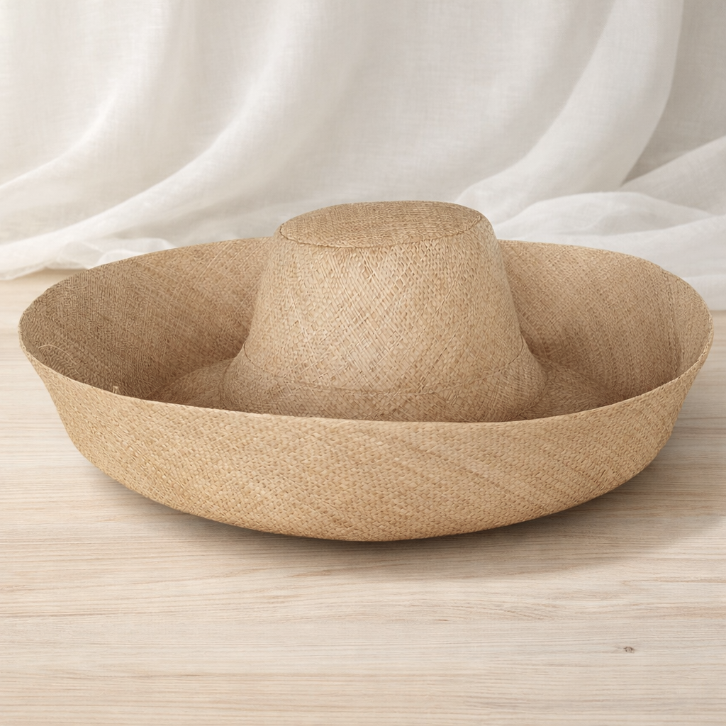 Handwoven Raffia Curve Brim Hat (Large Brim) in Biscuit - Ethical, Lightweight & Travel-Ready.