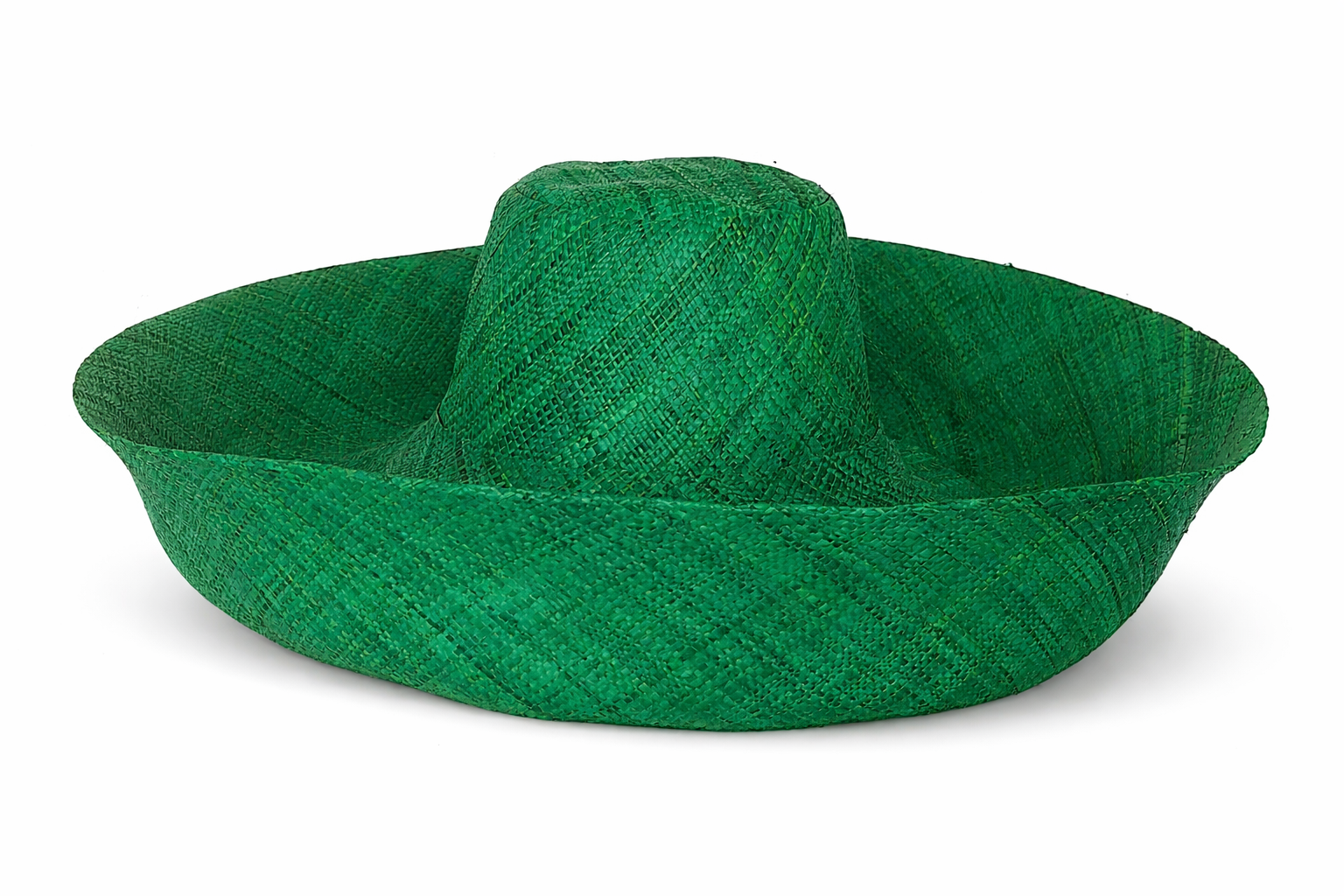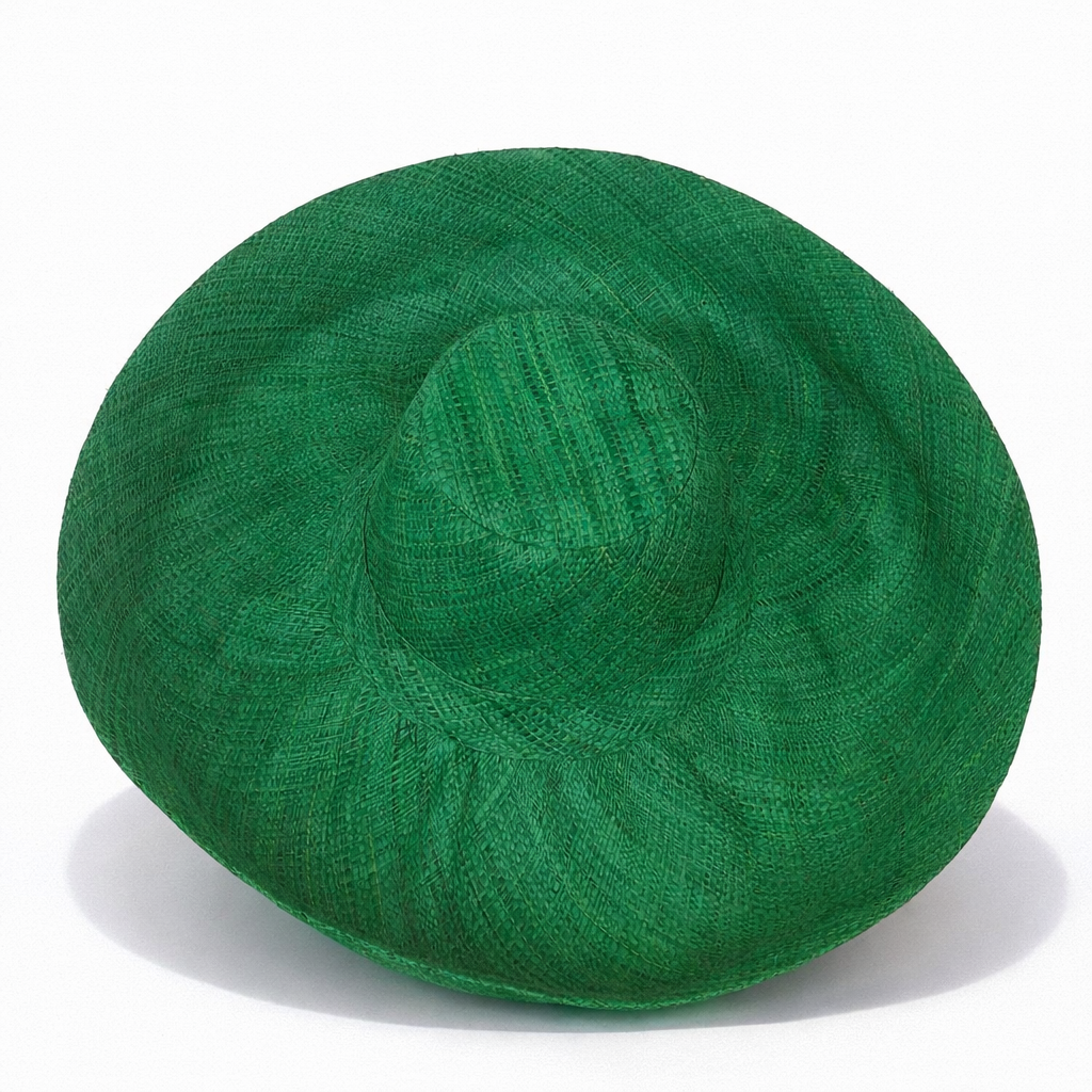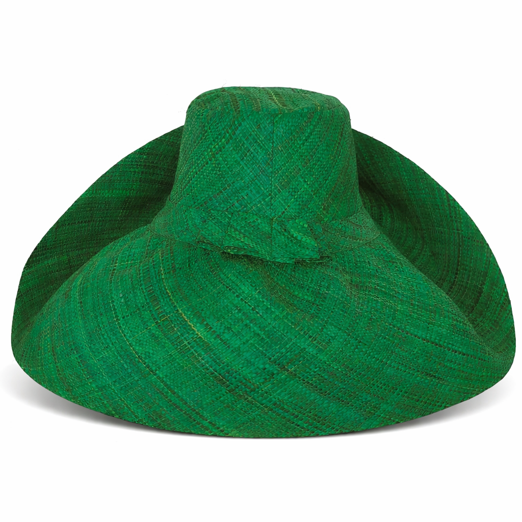 Handwoven Raffia Curve Brim Hat (Large Brim) in Shamrock Green - Ethical, Lightweight & Travel-Ready.